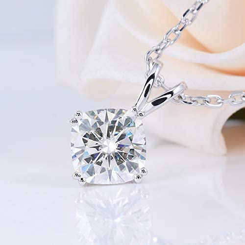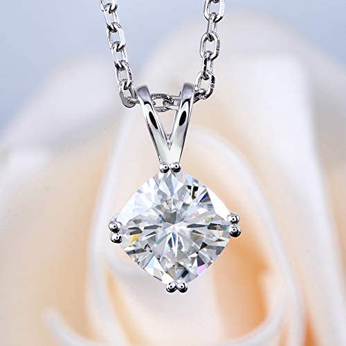 2ct 7.5mm GH Colored Cushion Moissanite Solitaire Pendant Necklace in 14k White Gold Women, Moissanite