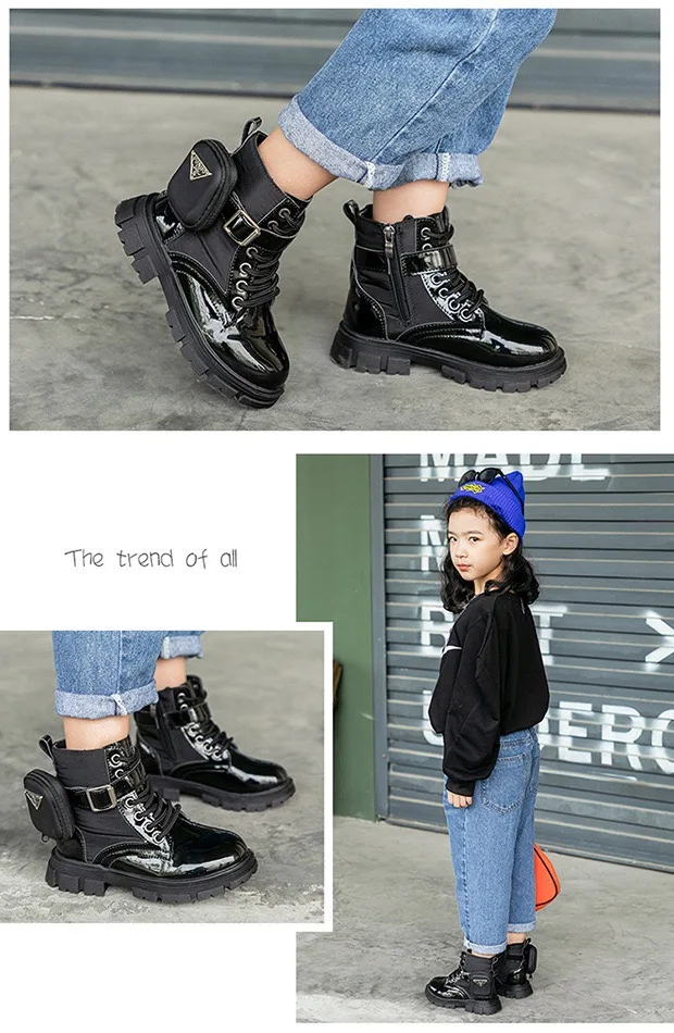 2021 Kids Zipper Martin Boots Girls Fashion Shoes Children's Autumn And Winter British Style Soft Pu Leather Ankle Boots Ki