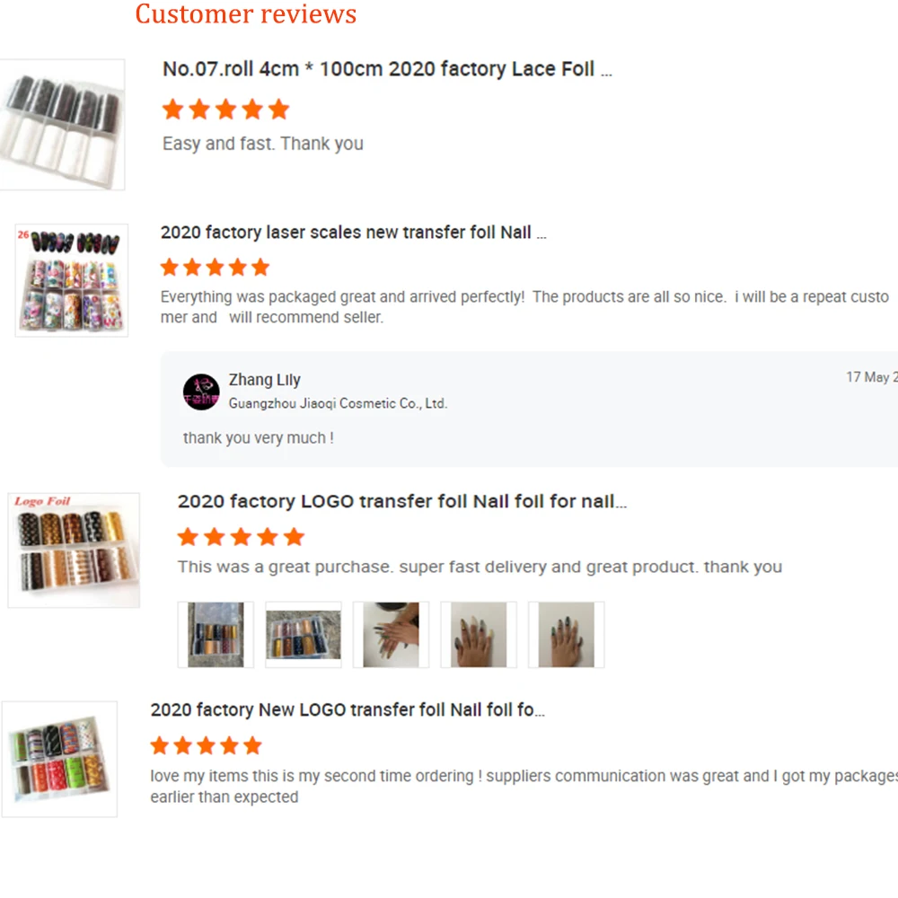 Guangzhou Jiaoqi Trading Co. Ltd. is a dedicated and professional manufacturer of nail art.We will provide you with comprehensive service of packaging, decorating, customized labelling, and so forth and "zero defect. zero complaints" as the quality objective. We Sincerely look forward to cooperating with you, and also cordially welcome each customer to visit us!