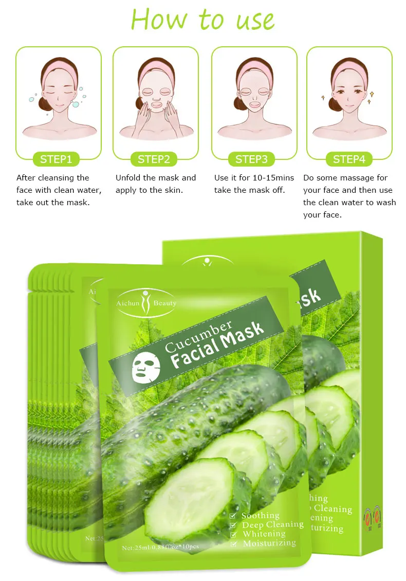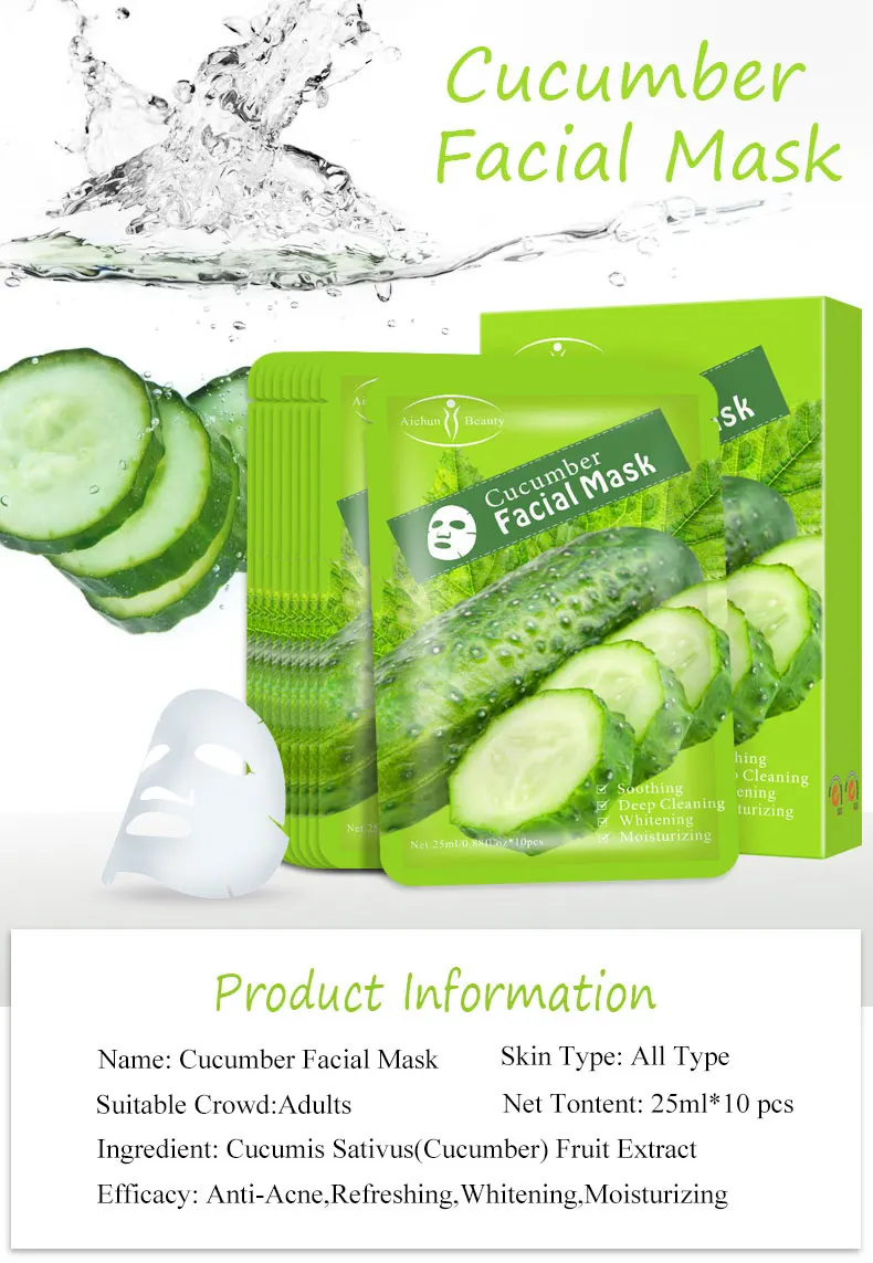 2022 Whitening and moisturizing cucumber mask facial sheet for Black skin
