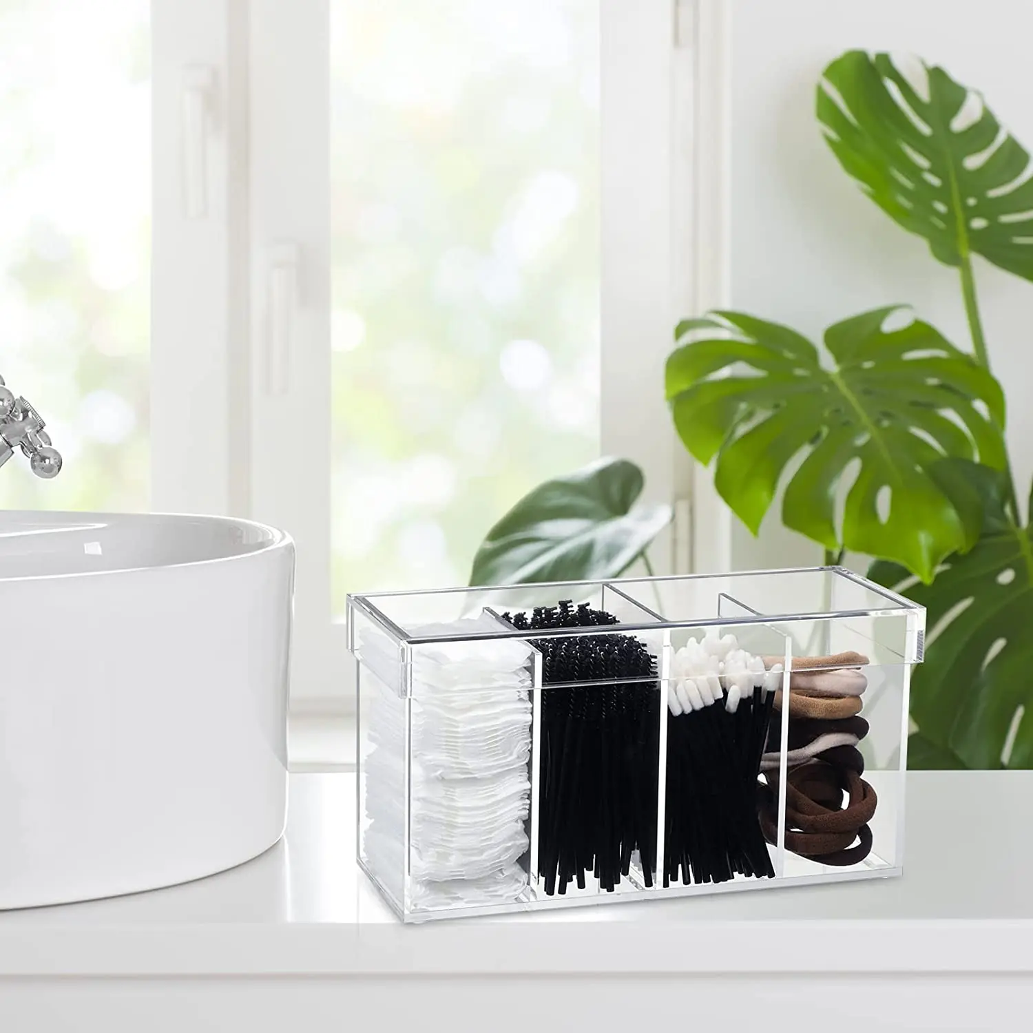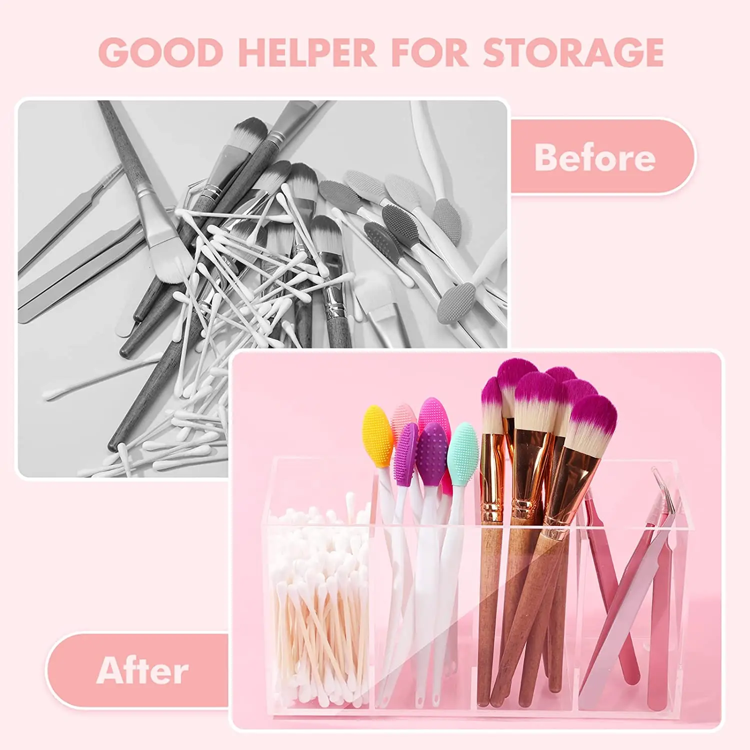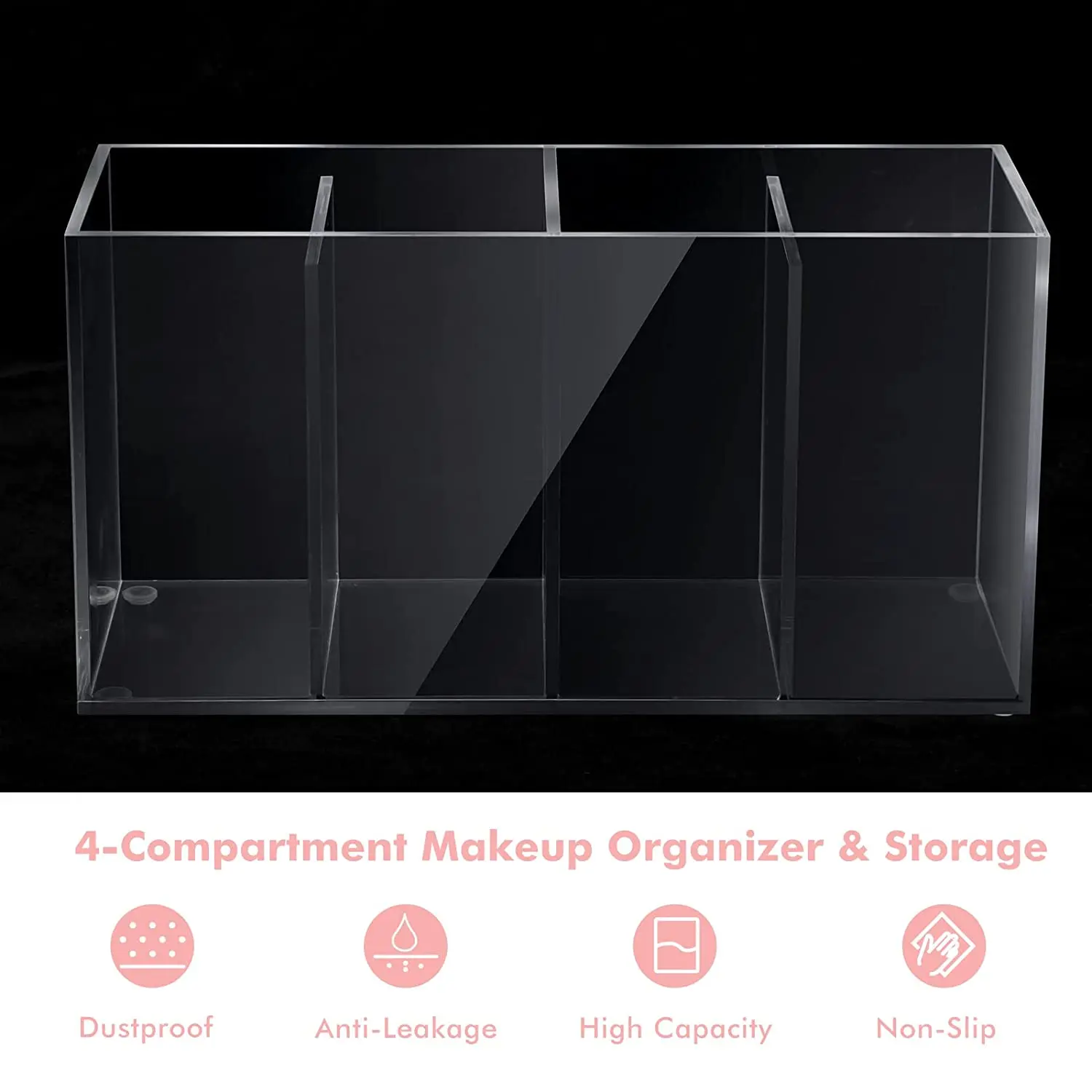 Product Name | 4 Compartment Acrylic Makeup Organizer and Storage with Lid Bathroom Storage Eyelash Mascara Brushes Organizer Brush Holder | Export packing | Wrapping film+bubble bag+foam carton |