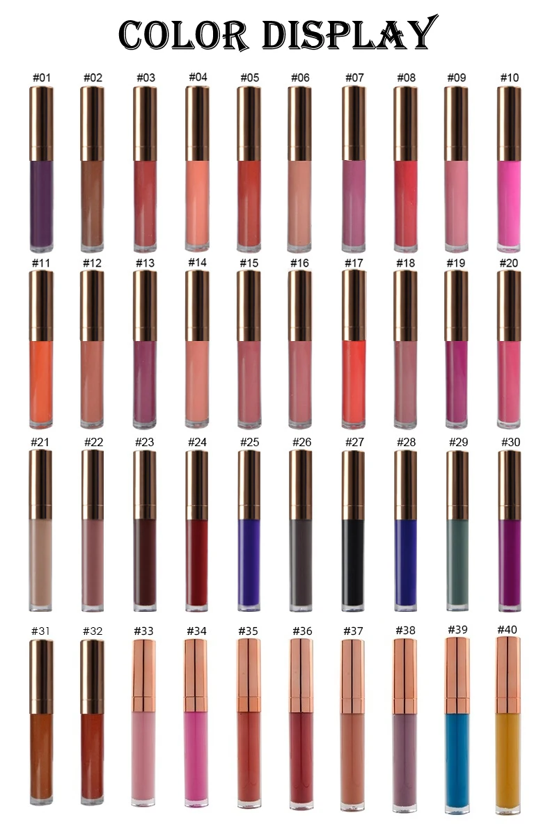 40 Colors Vegan Waterproof Organic Lip Gloss Vendor Wholesale Custom Long Lasting Nude Private Label Matte Liquid Lipstick