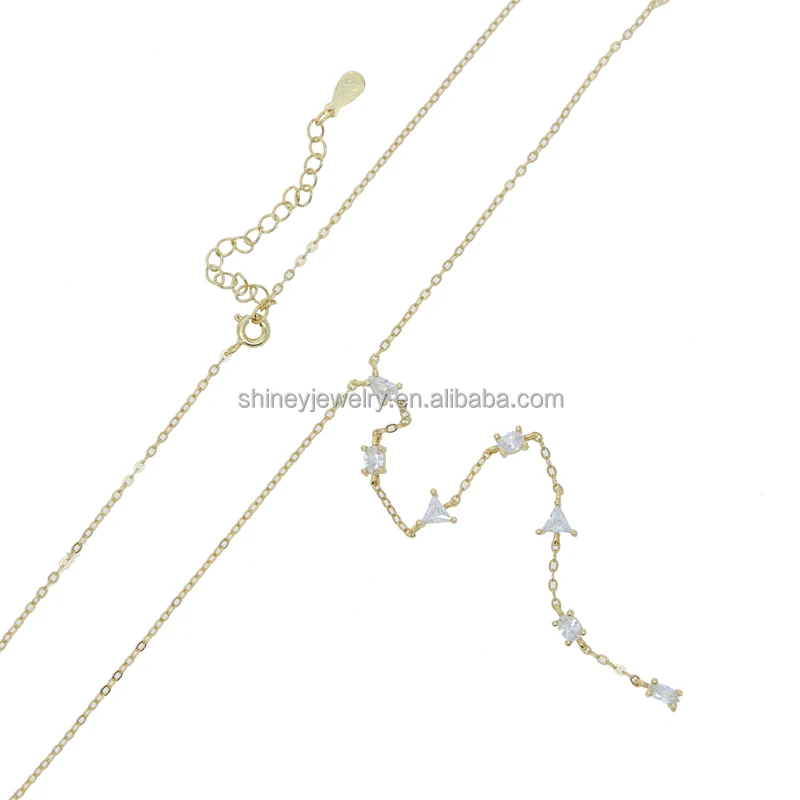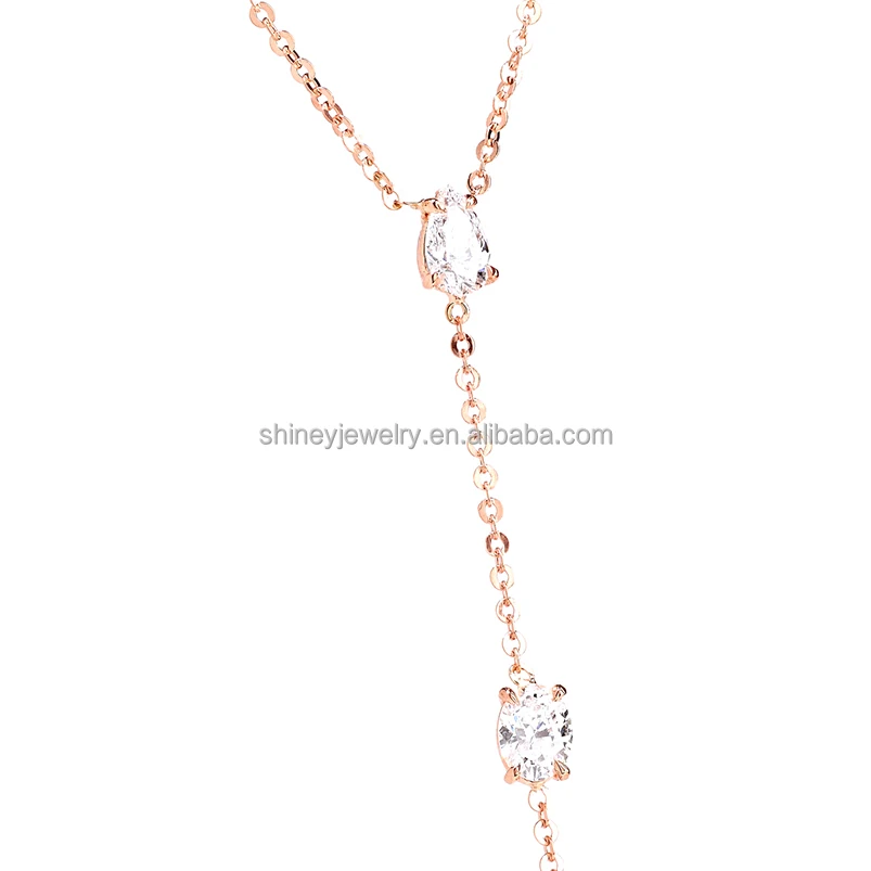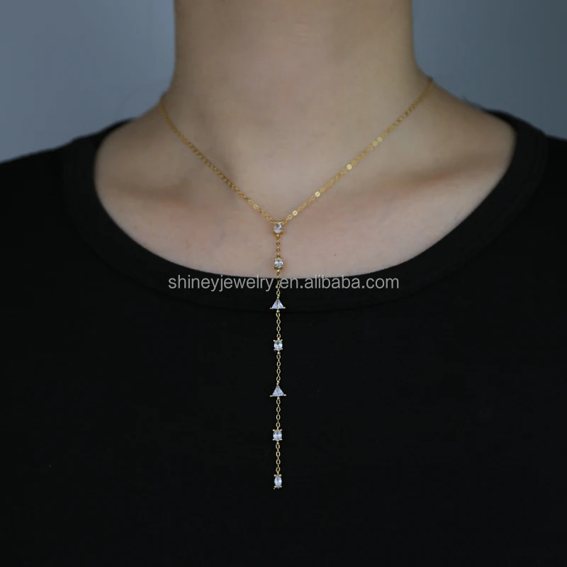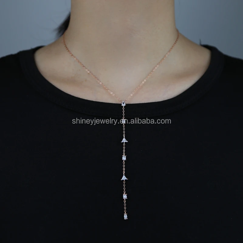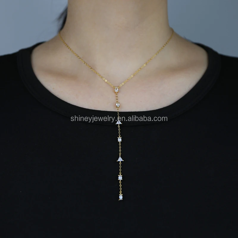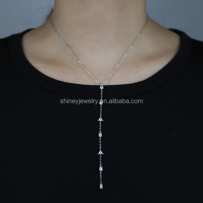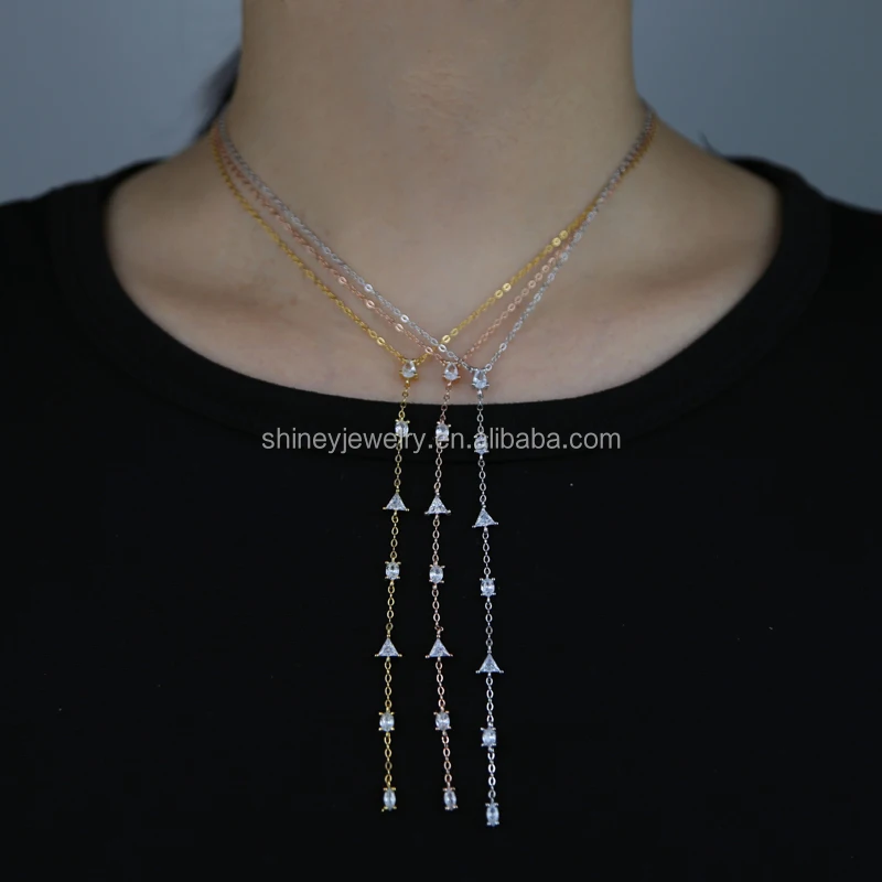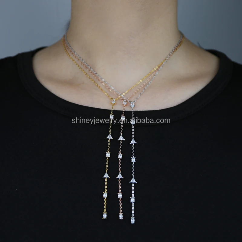 925 Sterling Silver Geometric Shaped 5a Cubic Zirconia Sexy Long Chain Y Lariat Necklace Women Wedding Jewelry