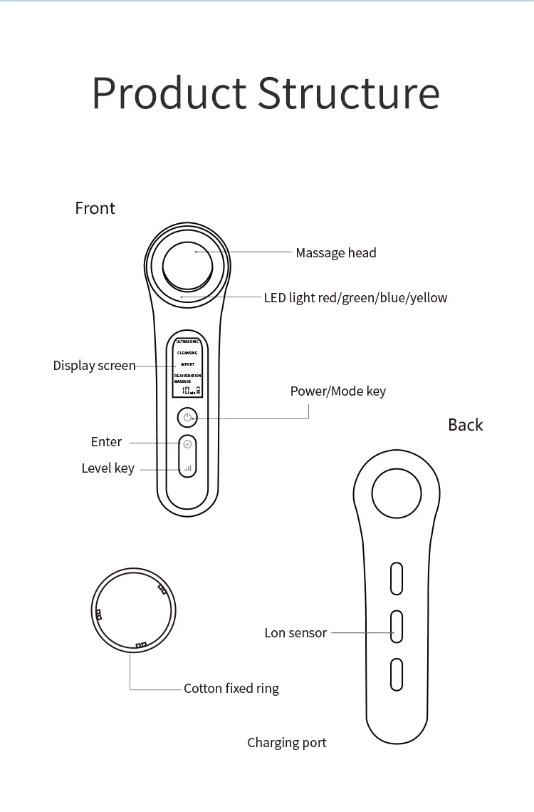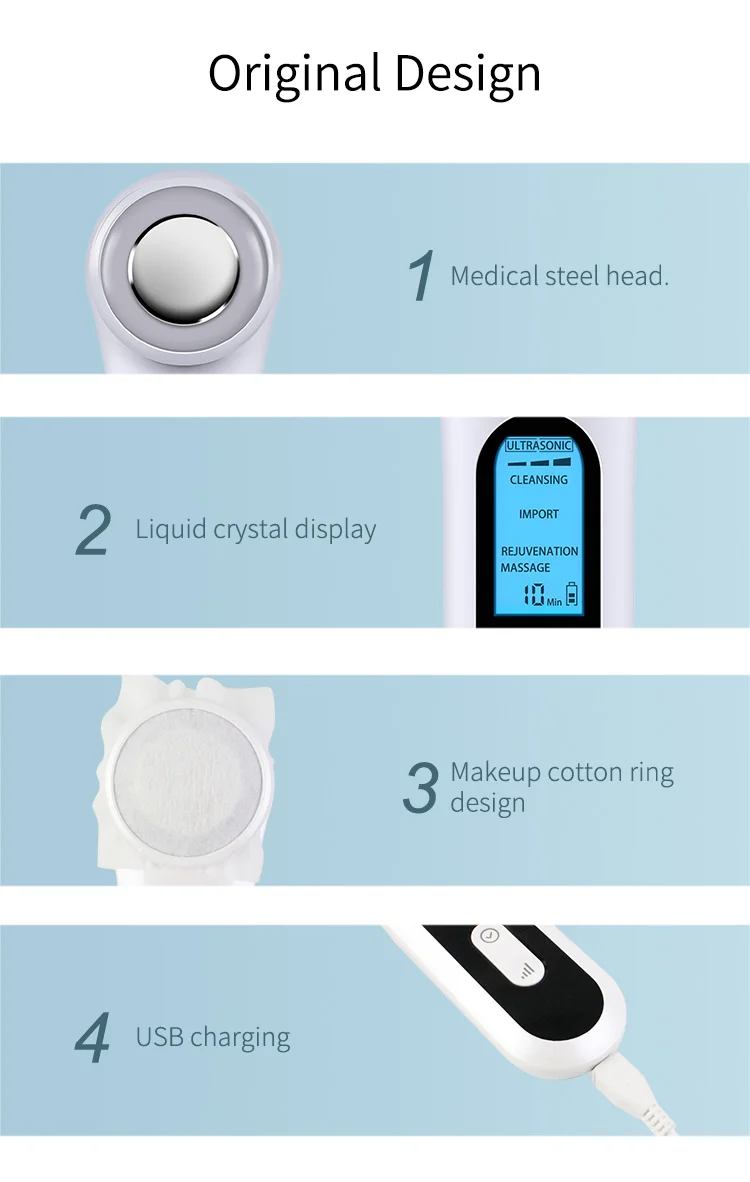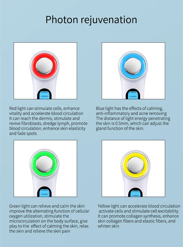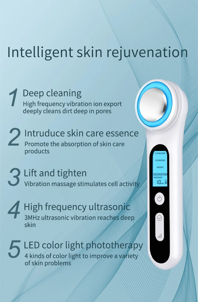 Amazon Rejuvenation Ultrasonic Clean Import LED Facial  beauty Massager