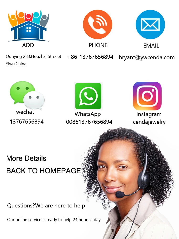 1. This is my first time buy from your company , how to arrange the shipping for me ? A: We usually send order by FEDEX, UPS, TNT or DHL.,4-15days arrive. 2. Can I get samples? How long is the sample lead time? A:Yes, certainly. We will provide the existing samples, Sample fee is refundable when the bulk order meets our MOQ . 3. Can you do the design for us ? Our design team has the expertise to provide the jewelry solution that specifically suits every customes’ requirement. 4. Notice Please note that the price on alibaba is for your reference .The actual price will be different from current price of raw meterials ,exchange rate ,and your order quantity. Hope you can understand us .Thanks ! 5.What are the certifications do you have? As showed in the section of company information, we have passed the Intertek,SGS certifications. As you can see, our company has a strong competitives and great qualified in our business area.We aim to provide the best quality and services to all global clients. 6.Feedback If you received the item in broken, please contact us and let me know how many quantity in broken. Please email us,we will resend to you next order.