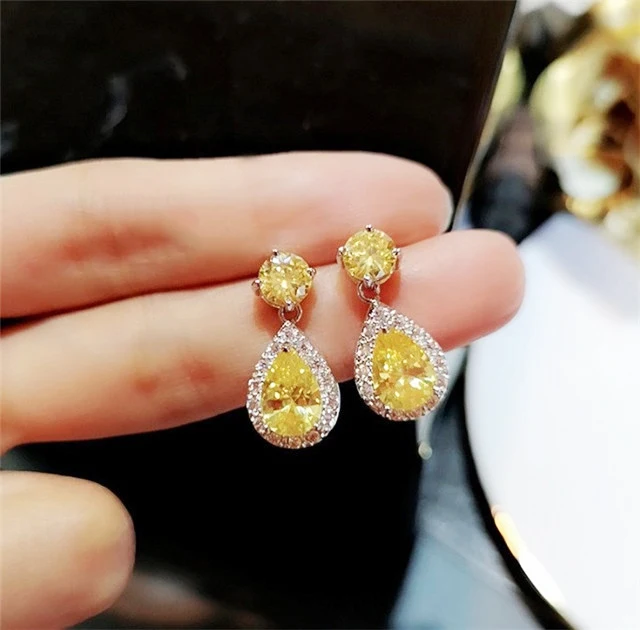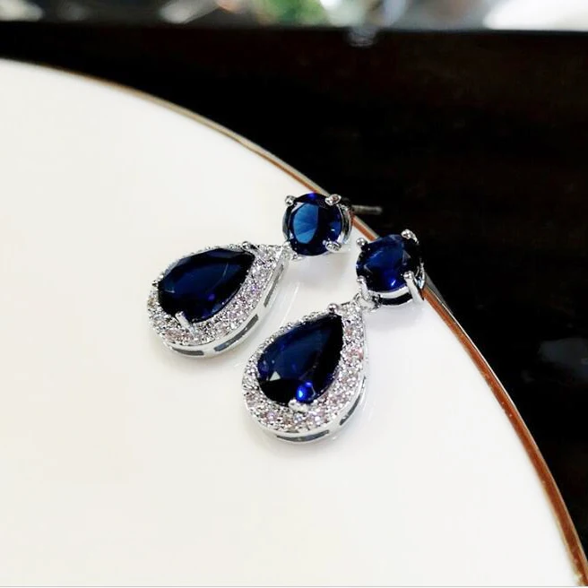 Caoshi 2021 Gift Wedding Earrings Fashion Earrings Jewelry 5 Color Water Drop Zircon Stone Silver Pendant Earrings For Women