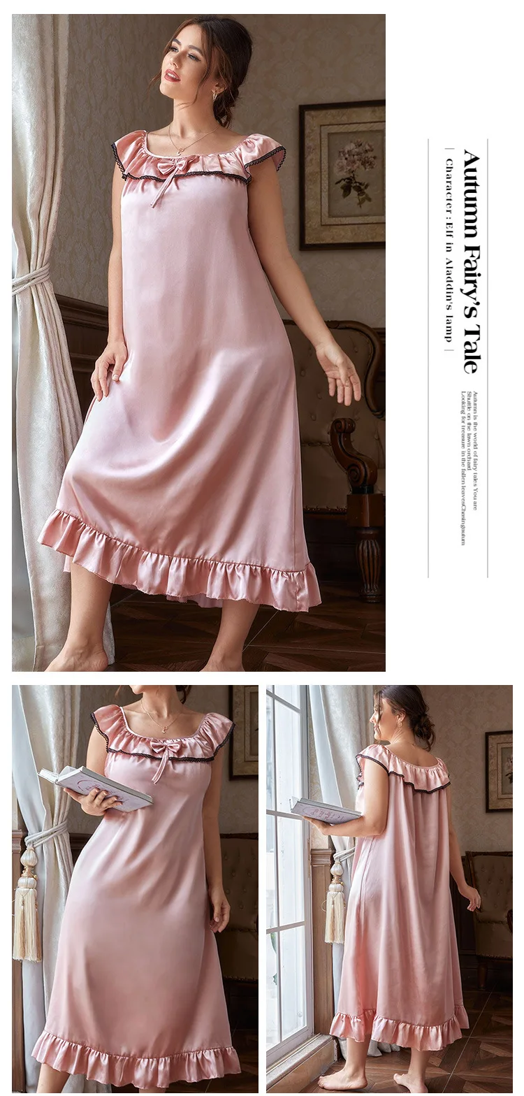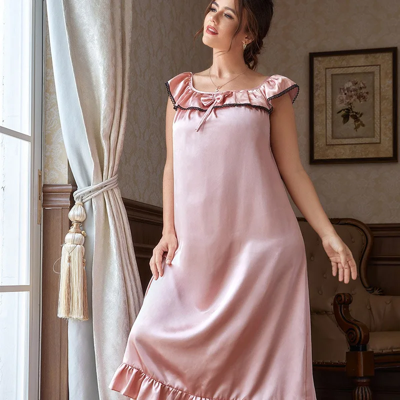 Cheap Sexy Large Relaxed Casual Home Wear Thin Home Long silk Sleeping Dress Women Plus size Pajamas