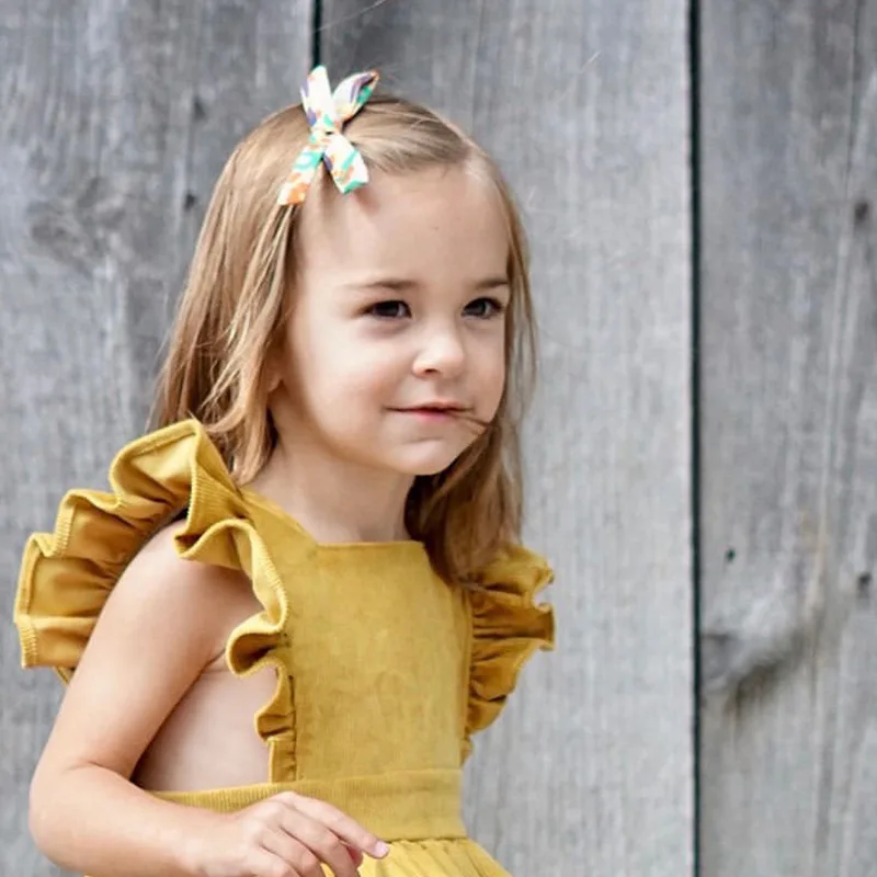 Custom Ins Baby Dress Corduroy Flutter All Season Fit Kids Girls Dresses Boutique Lined Princess Dress Corduroy