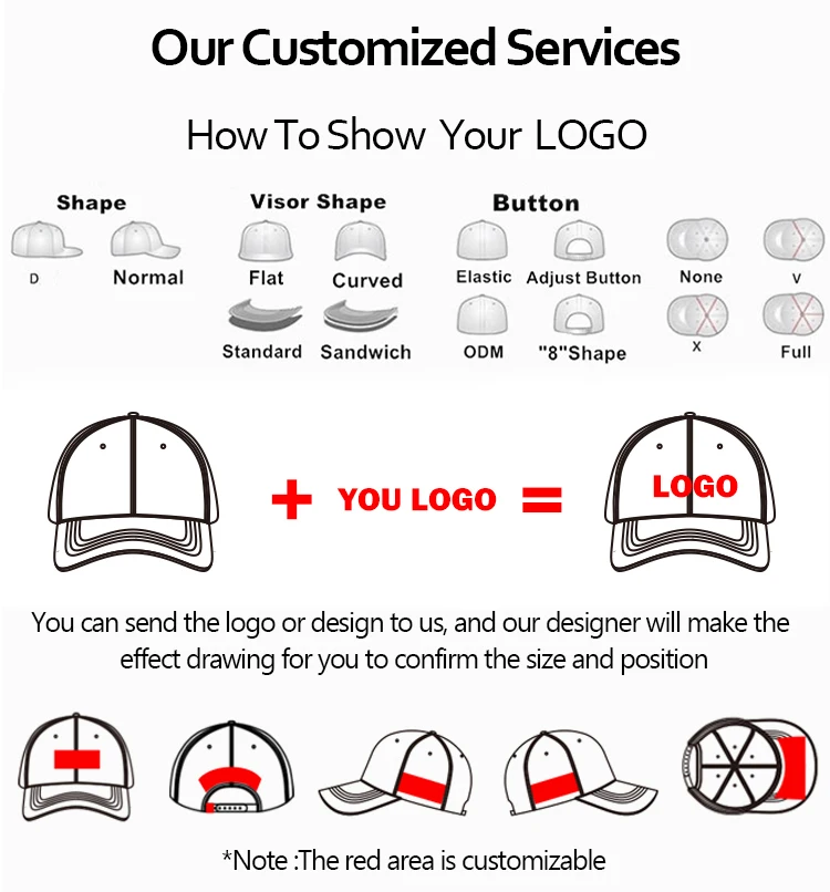 Logo | Flat embroidery, 3d embroidery, print, rubber, woven, leather etc |