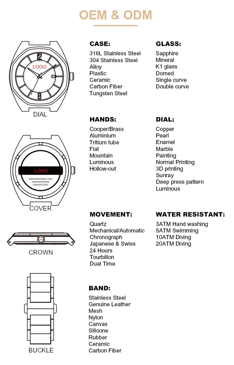 Logo Custom | We can also customize your logo on different parts of the watch | ||