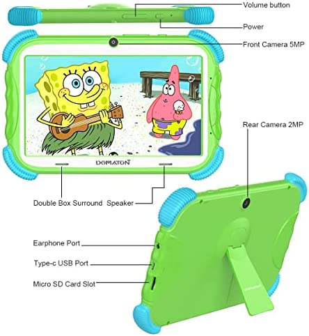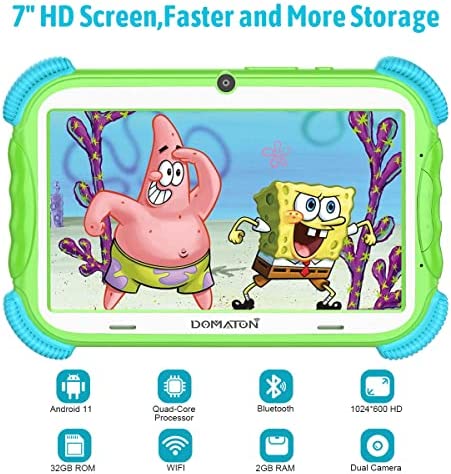 DOMATON 儿童平板电脑 Android 11 平板电脑 - 7 英寸幼儿平板电脑 带无线网络和蓝牙-32GB 平板电脑 适合 6-12 岁儿童学习平板电脑 带外壳