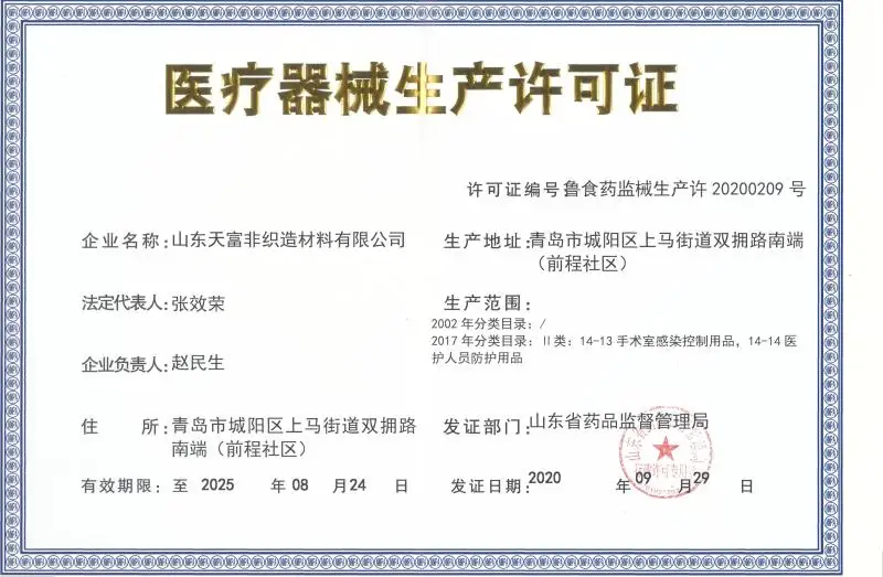 Shandong T&F was established in September 2009. It is a national high-tech enterprise focusing on the integration of medical masks, labor protection masks, medical equipment, protective equipment, non-woven fabrics and non-woven equipment R&D, production, and supply. The company has the world's advanced mask production capacity and high-end nonwoven material technology, and its product applications cover medical equipment, personal protection, rail transit, clothing, household, cleaning and other fields. It has registered trademarks such as Tianfu, Aijia, Red Whistle, TOFF, and a number of product and technology patents such as mask interlining.