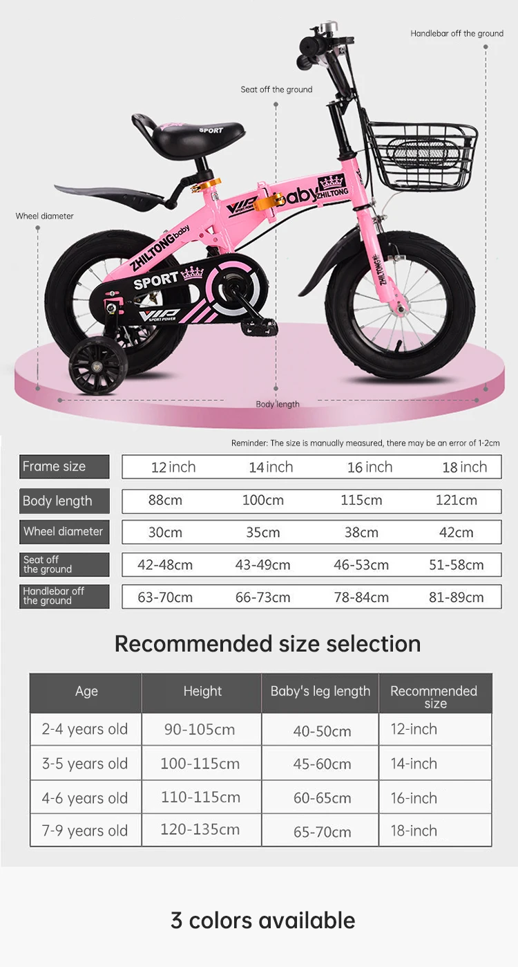 Factory Wholesale Kids Bicycle with Training Wheels 12 14 16 Inch Folding Kids' Bike for Boys Girls