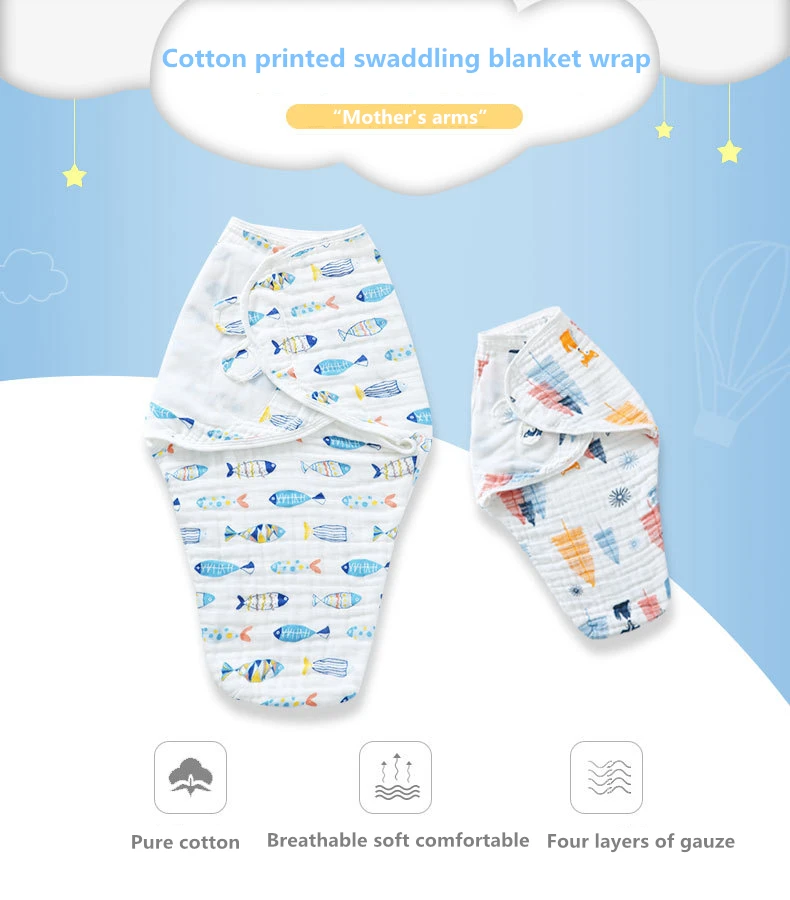 Factory Wholesale Price Adjustable Newborn Blanket Cartoon Printing Baby Cloth Swaddle Wrap 100% Organic Cotton Clothing Sets