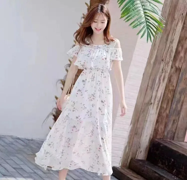 2022 New Arrivals Women Fashion Clothes Styles Elegant Casual Plain Printing Maxi Dress Shoulder Long Plus Size Women's Dresses
