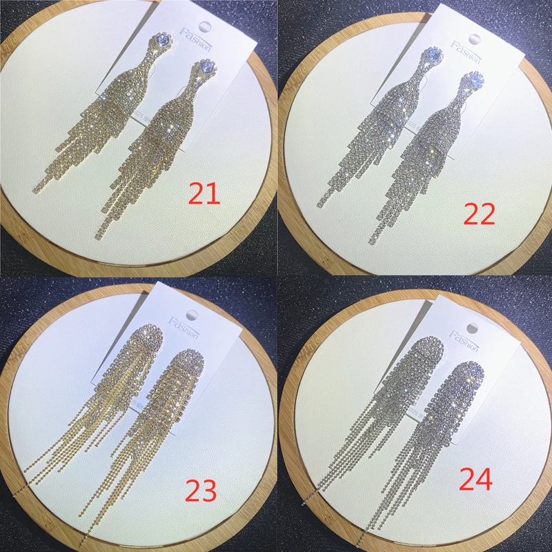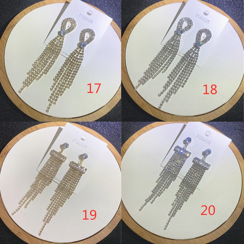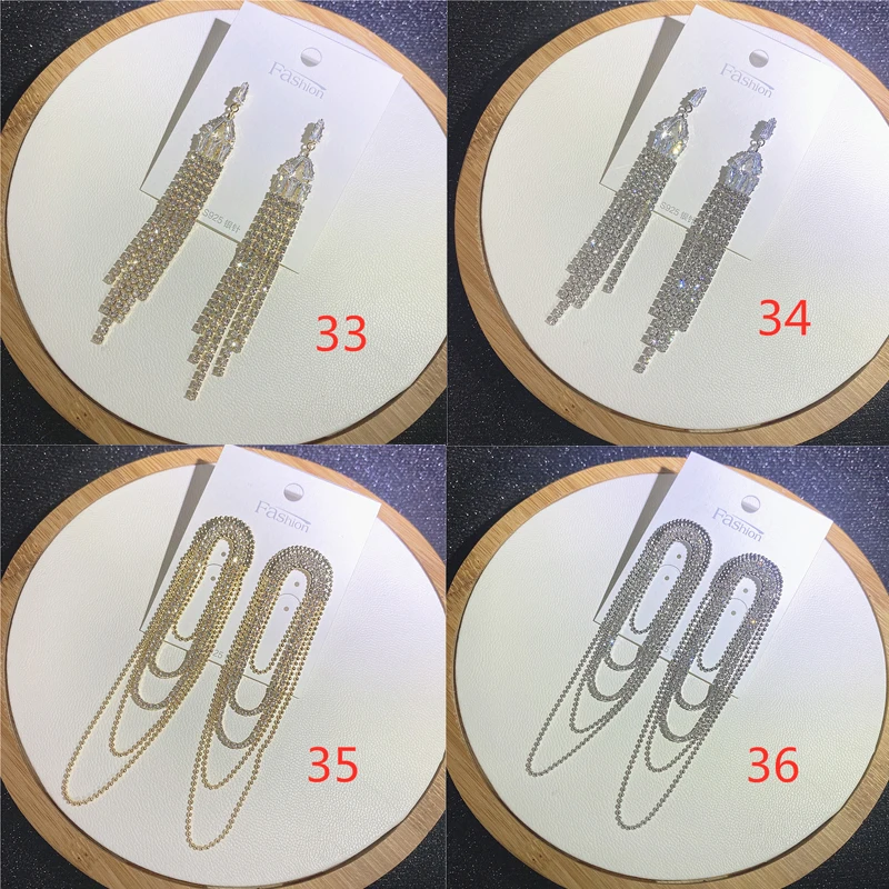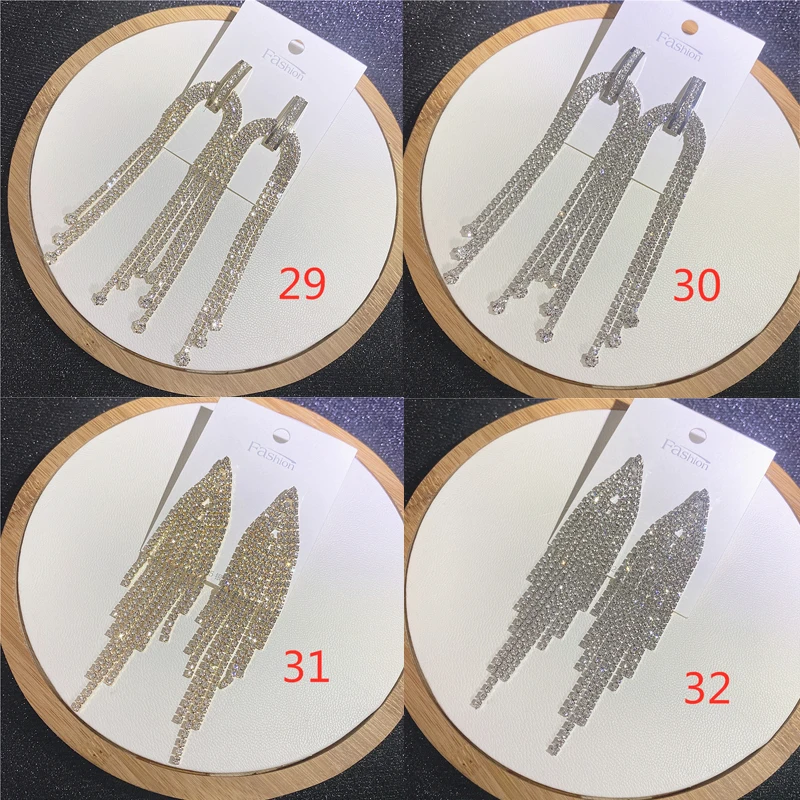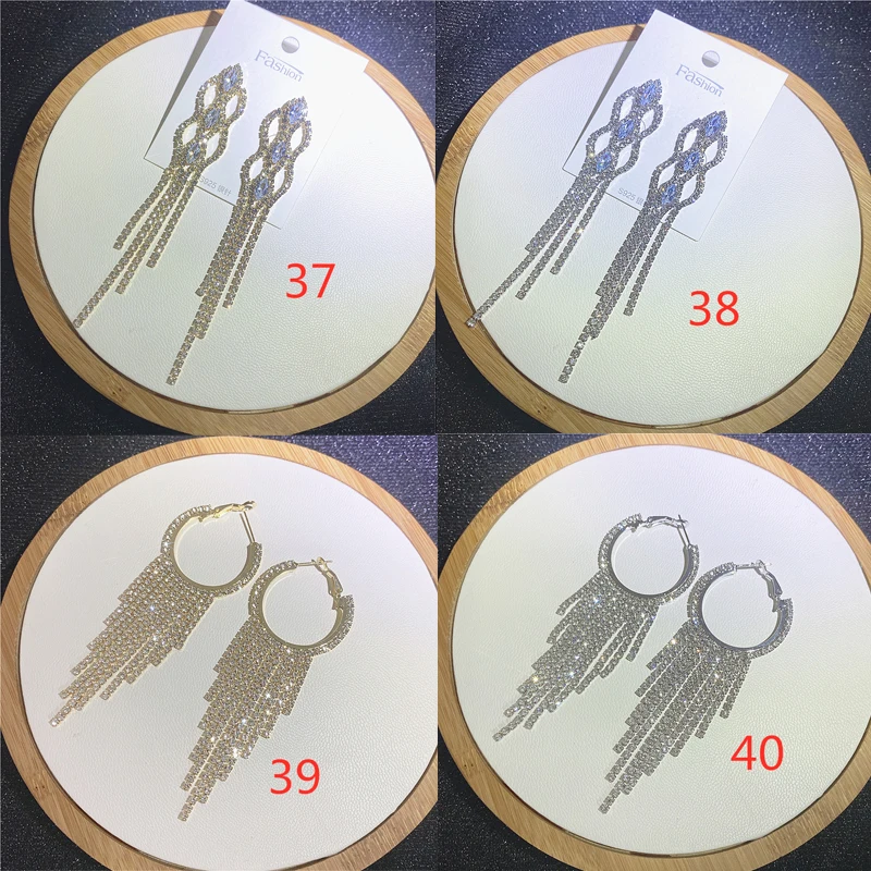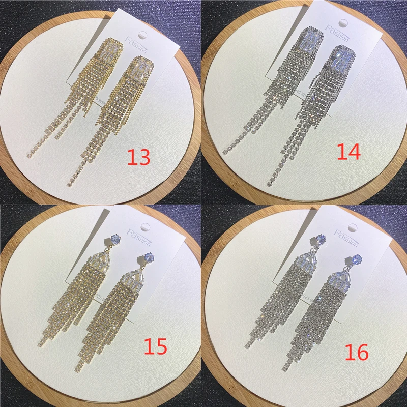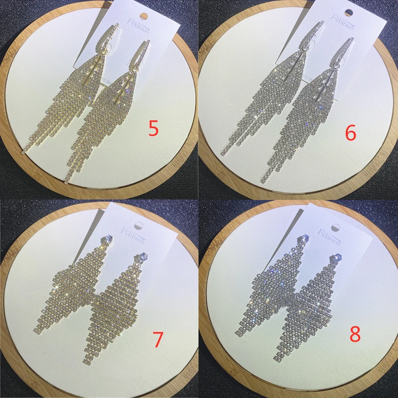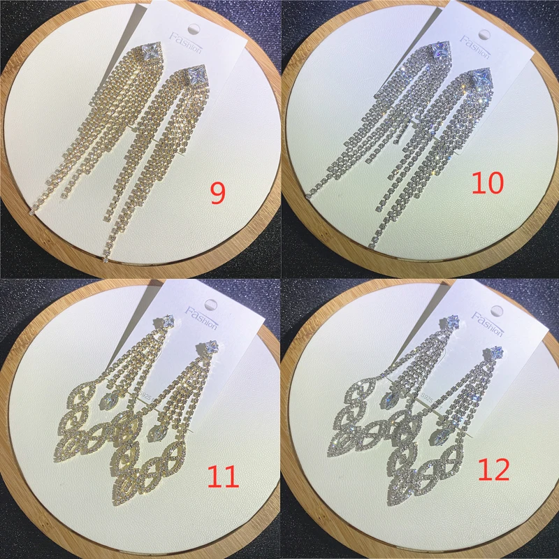 Fashion Sliver Exaggerated Long Crystal Tassel Rhinestone Drop Earrings Luxury Bridal Wedding Jewelry for Women