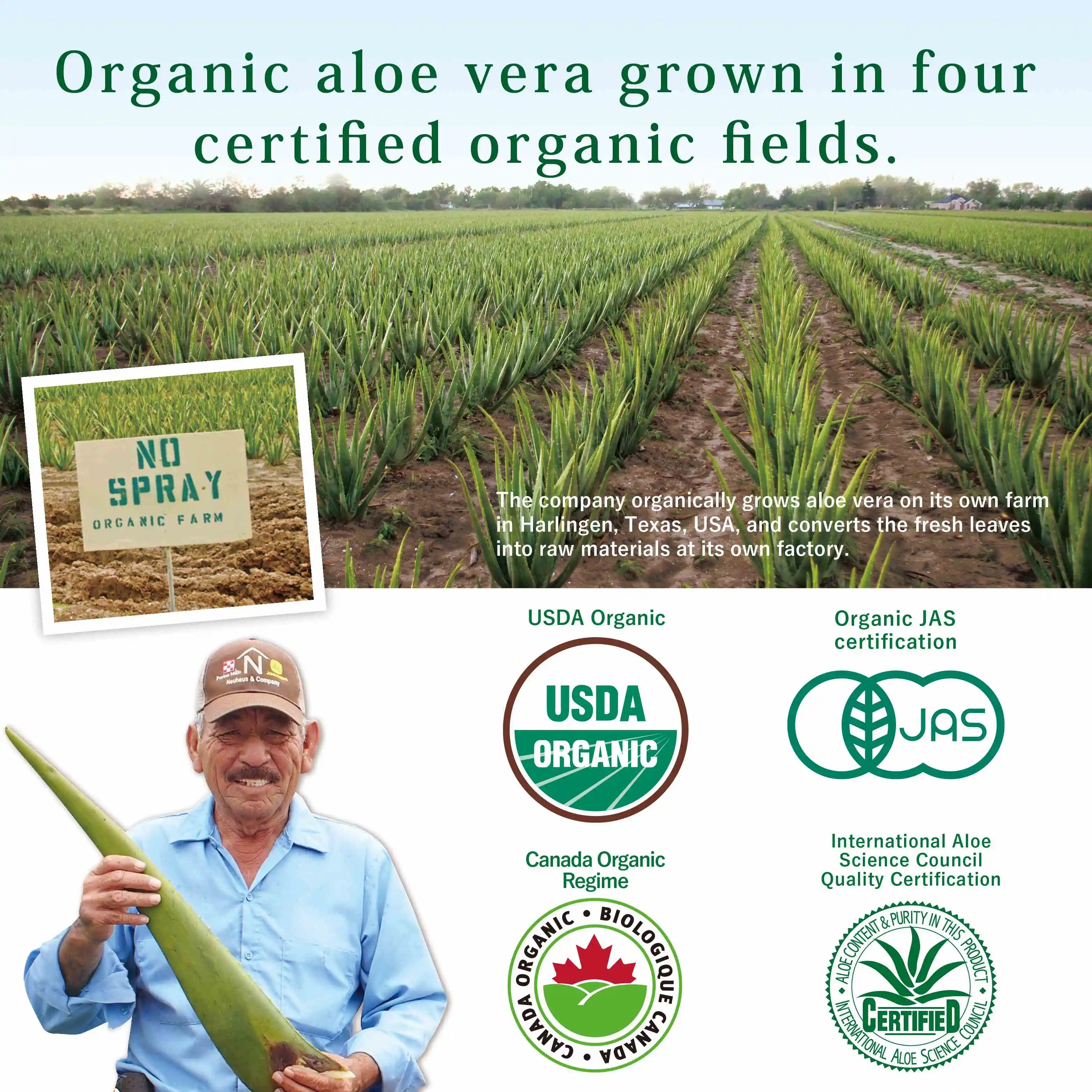 Aloe Vera is grown organically, without the use of pesticides or chemical fertilizers, on a group farm in Harlingen, Texas, the United States, a well-known aloe vera production area.