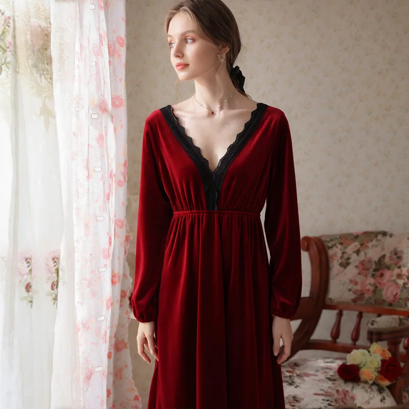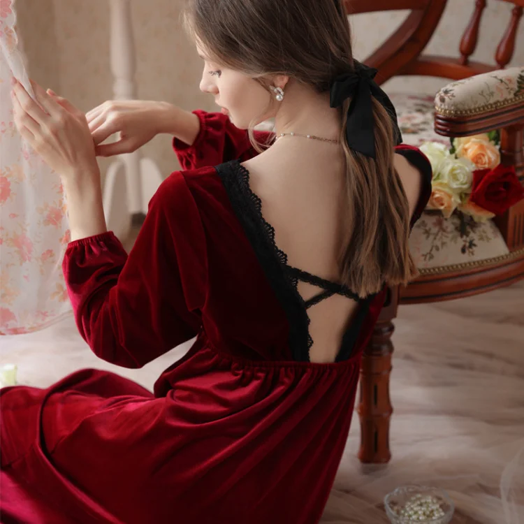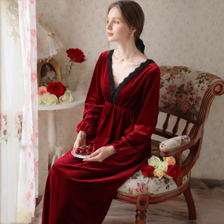 Hsz 8a256 Gold Velvet Pajamas Women Night Wear Thermal Night Dress For Women Girls Sleepwear Sleep Clothes Long Sleeve