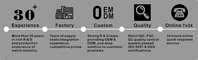 To help more brands in world,we provide one-stop matching scheme, also set up a marketing and increased R & D Team. We focus, dive deeply into watches OEM & ODM as always! Our goal is to help Customer build them own watches brand through our one-stop watches supply chain management services。