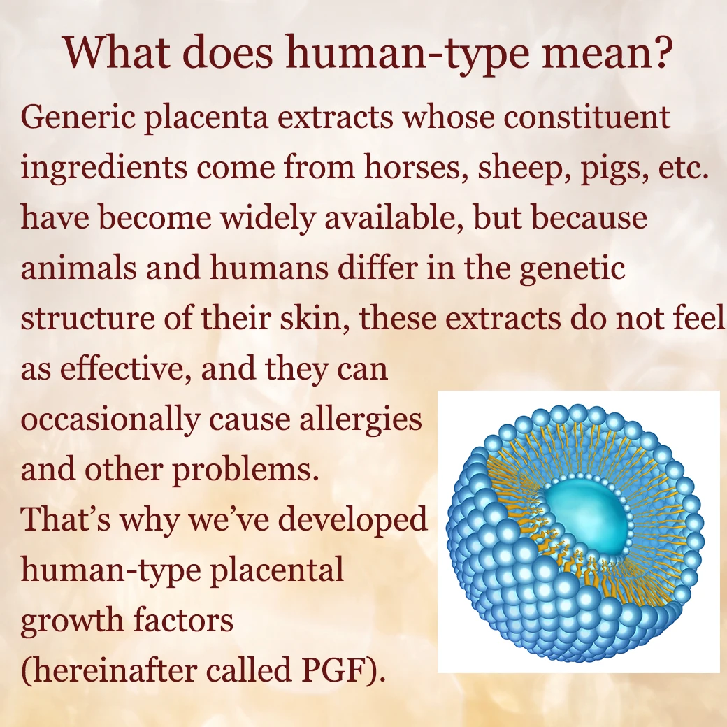 occasionally cause allergies and other problems. That’s why we’ve developed human-type placental growth factors(hereinafter called