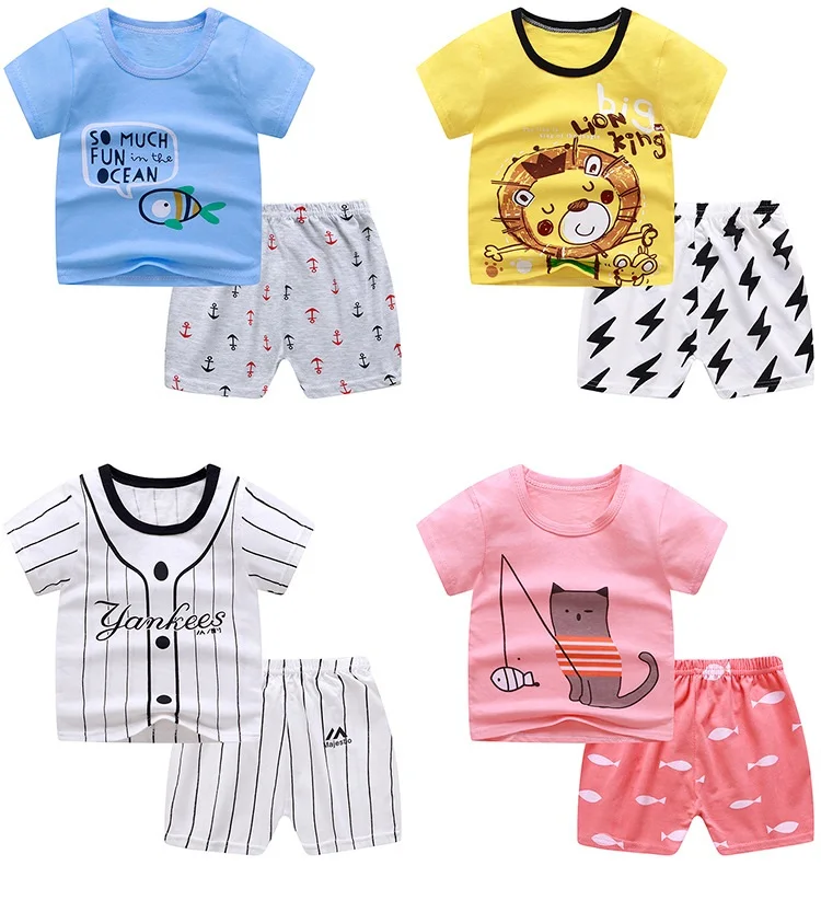 Hot Sale Summer Children's Clothing Sets 100 Different Design Baby Boy Clothing Sets 2pcs T-shirt Kids Summer Clothing