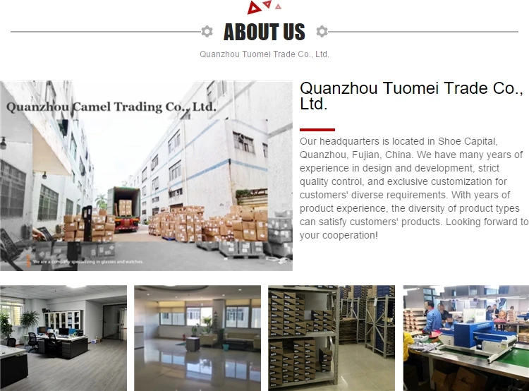 | Quanzhou Tuomei Shoes Factory is located in Jinjiang, the shoe capital of China, specializing in research and development and production of various styles and groups of shoes. With first-class production equipment and complete enterprise chain, all our products meet international quality standards and are highly appreciated in various markets around the world. At the same time, the company's employees have rich experience. If you are interested in any of our products or want to discuss custom orders, please feel free to contact. |