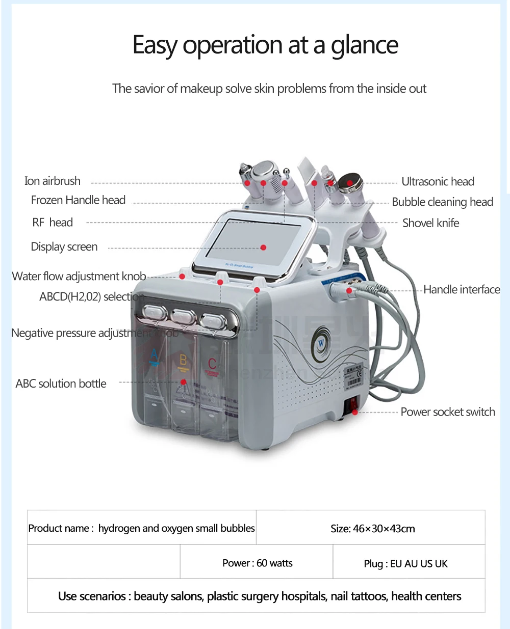 This beauty machine can effectively moisturize and whiten skin, smooth wrinkles. It can reduce facial spots any damage to the skin. Comes with 6 different functions of probes