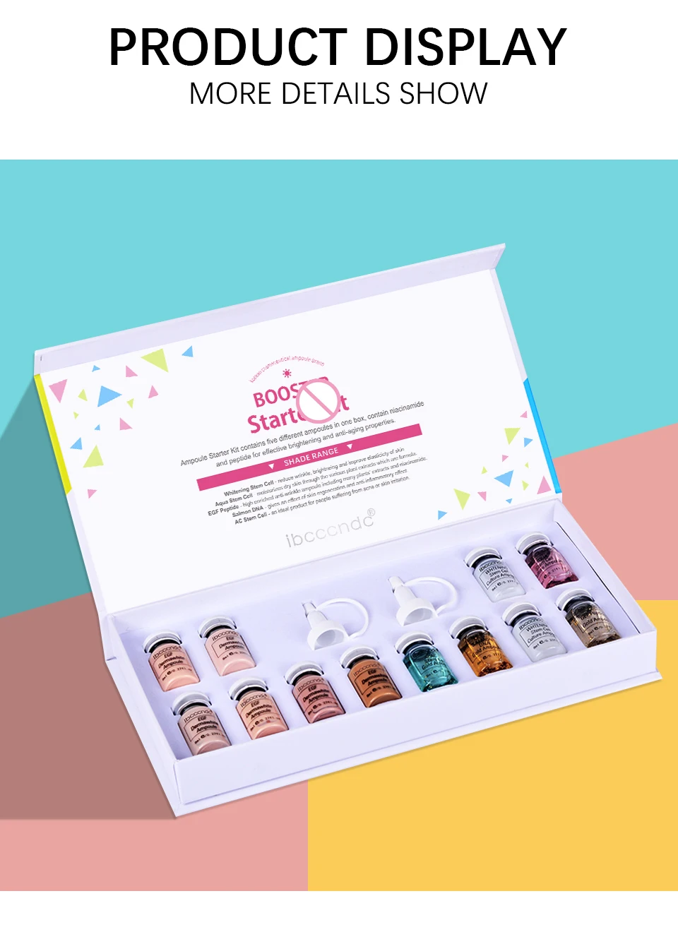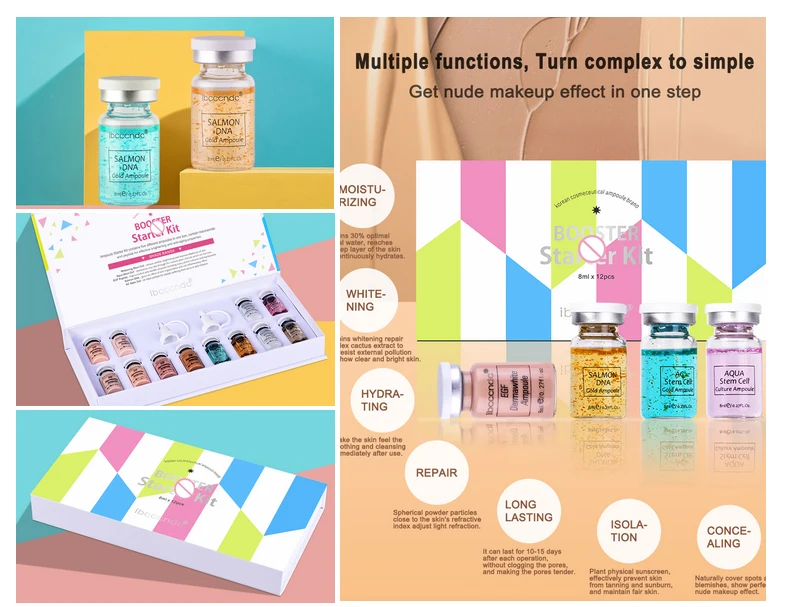 Net content: 8ml*12 Brighten the skin Recommended for bright skin tones. Restores even skin tone and radiant complexion Does not clog pores like makeup foundation or BB cream Recommended for people with dark complexion, significantly reducing freckles and skin discoloration caused by acne and photoaging