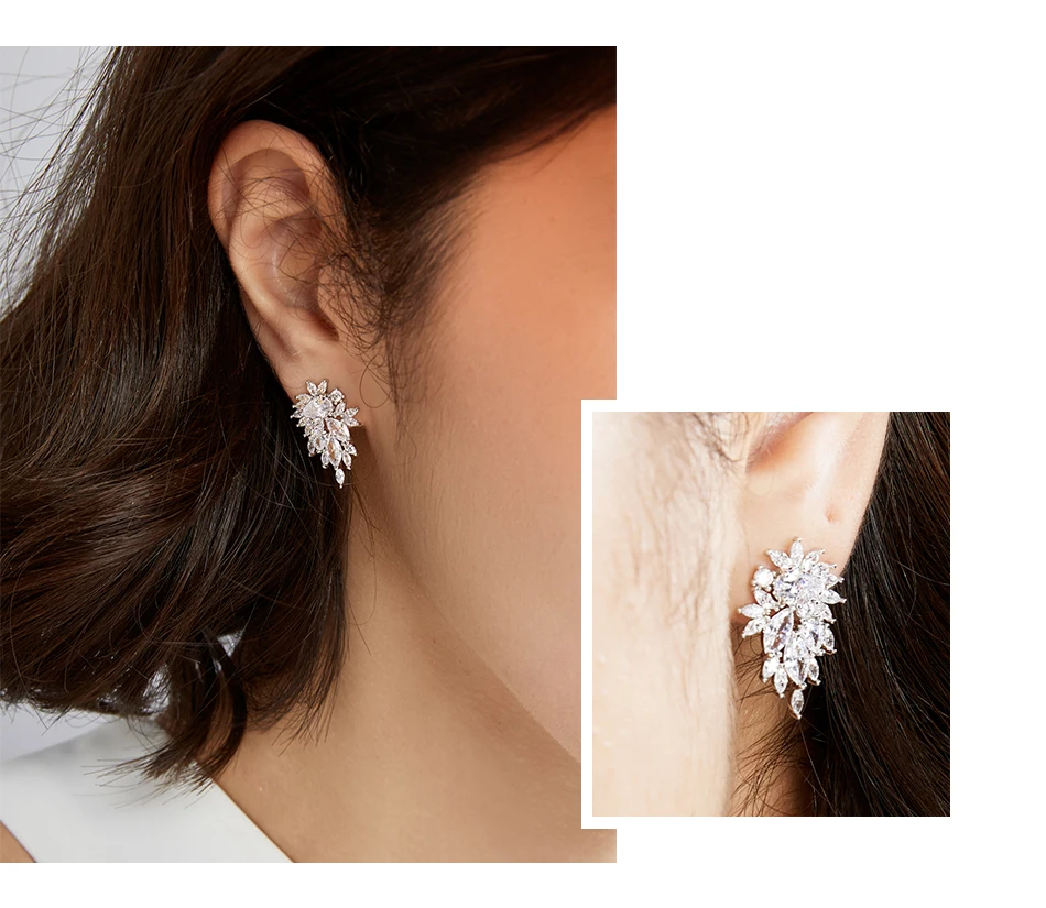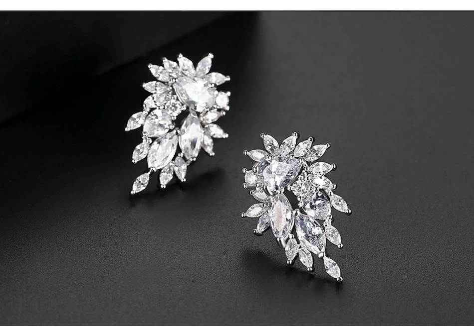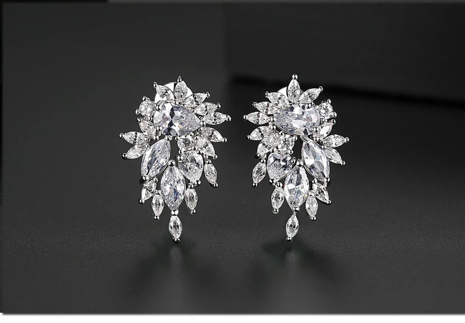 Luoteemi New Arrival Bridal Wedding Water Drop Cubic Zircon Fashion Jewelry Flower Stud Earrings For Women