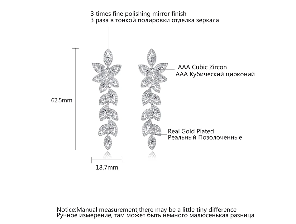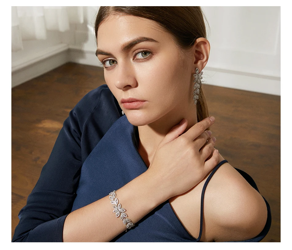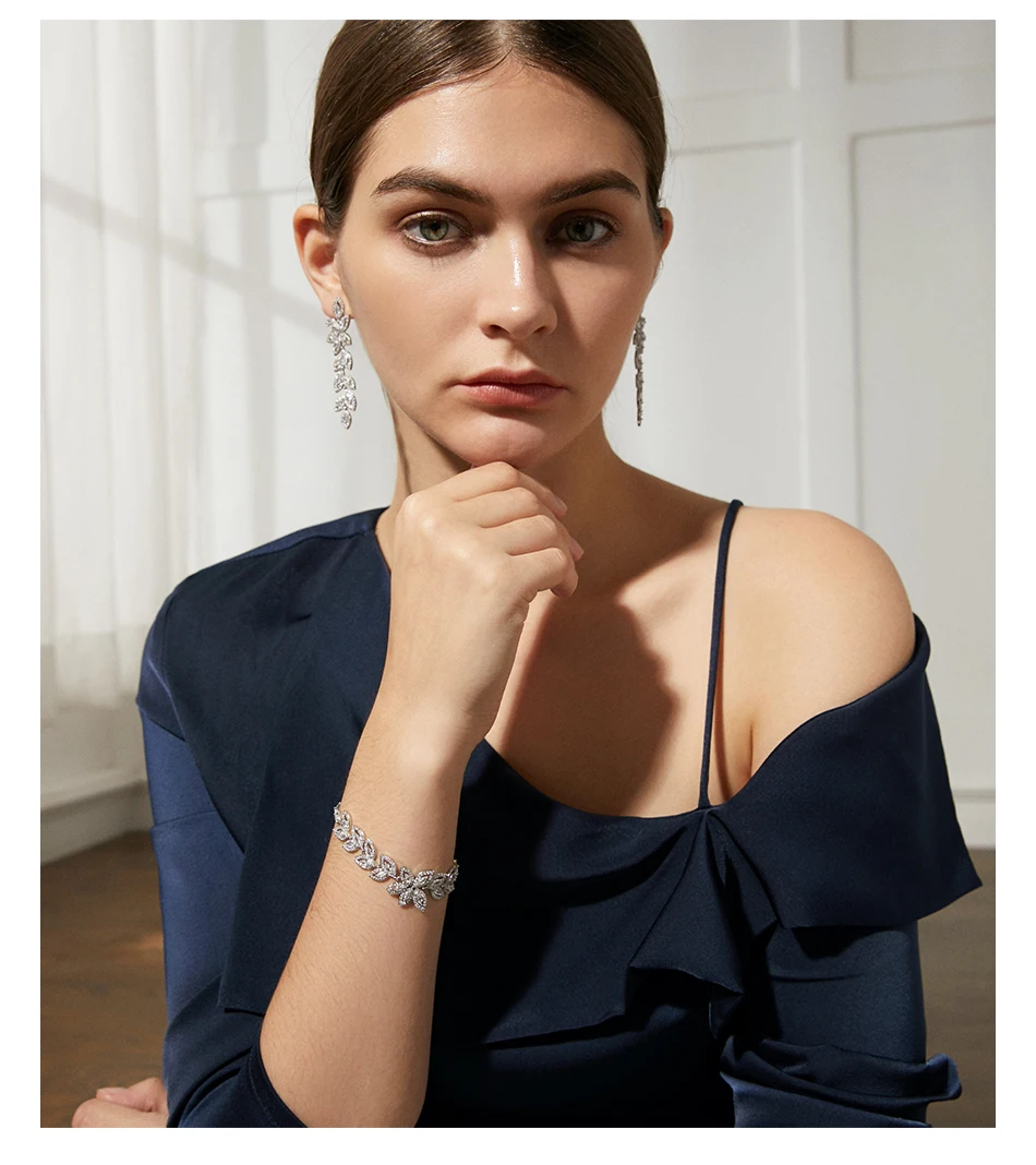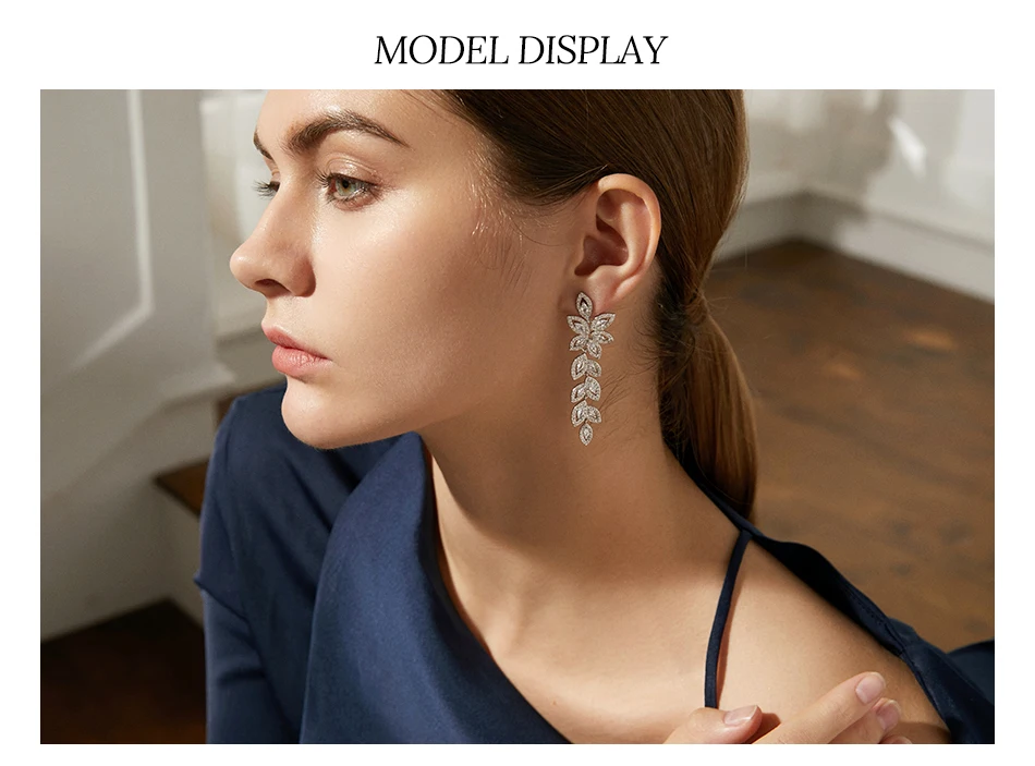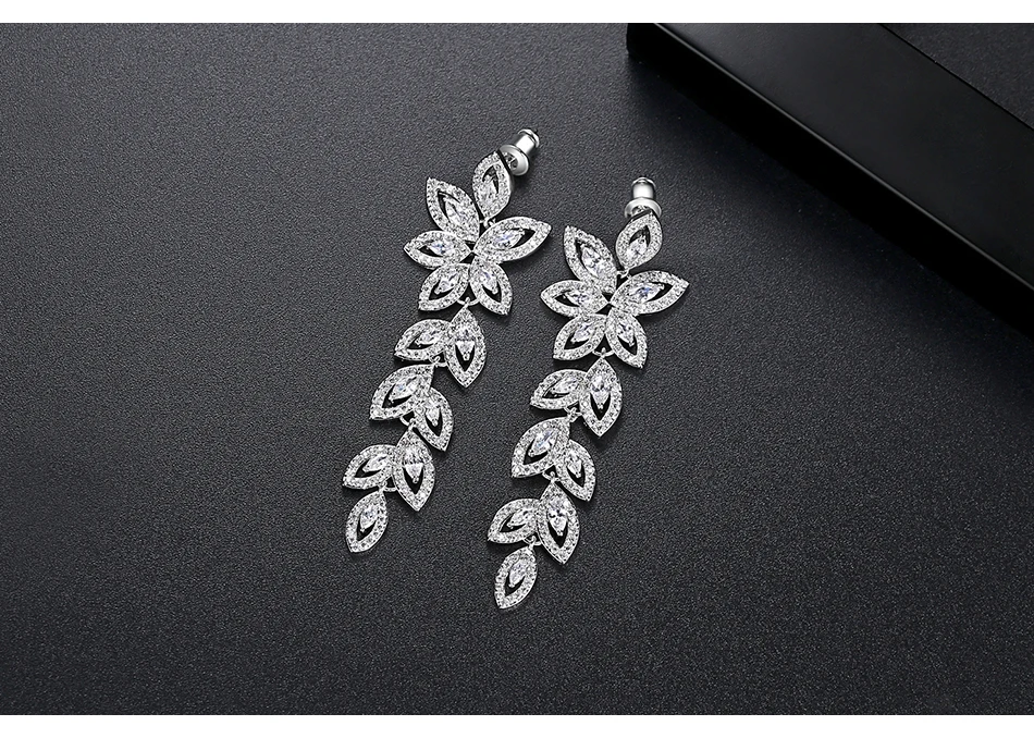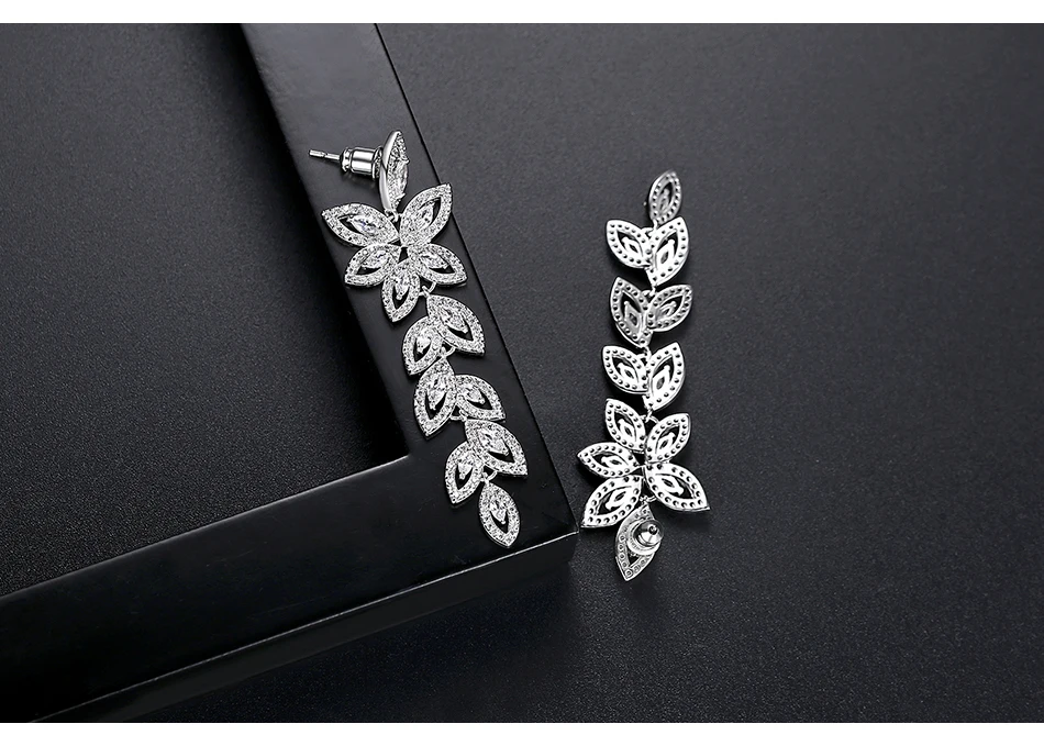 Luoteemi Wedding Jewelry Boho Earring Full Crystal Rhinestone Loog Drop Leaf-shape Bridal Jewelry Earrings