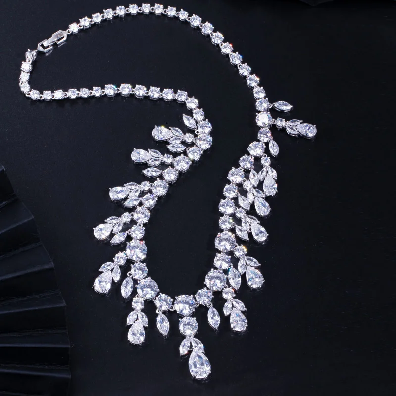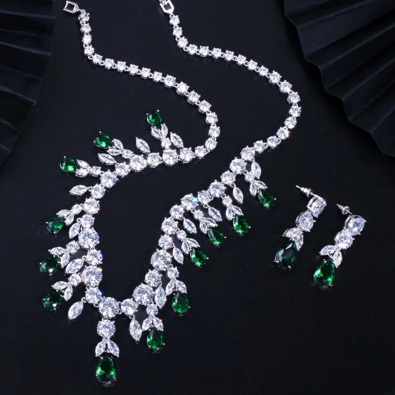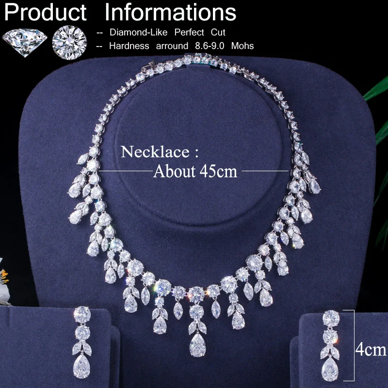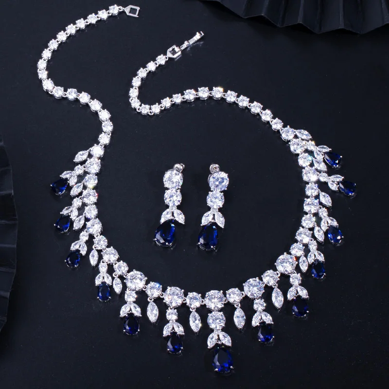 Luxury Dark Blue Women Wedding Party Dress Jewellery Big Dangle Drop Bridal Cz Necklace Earrings Jewelry Sets