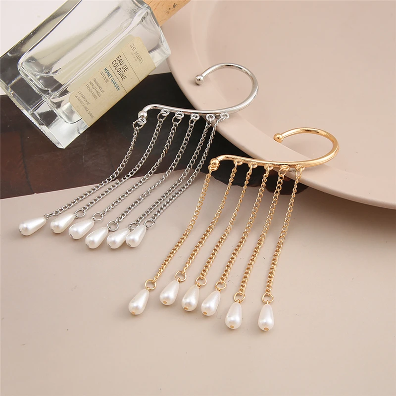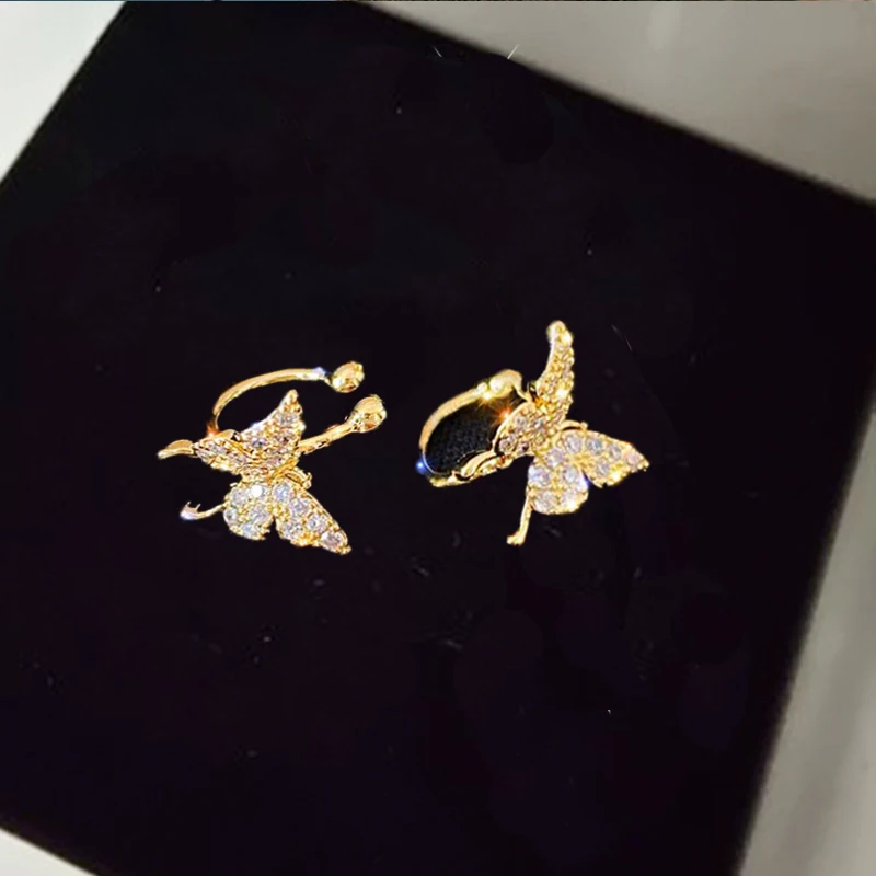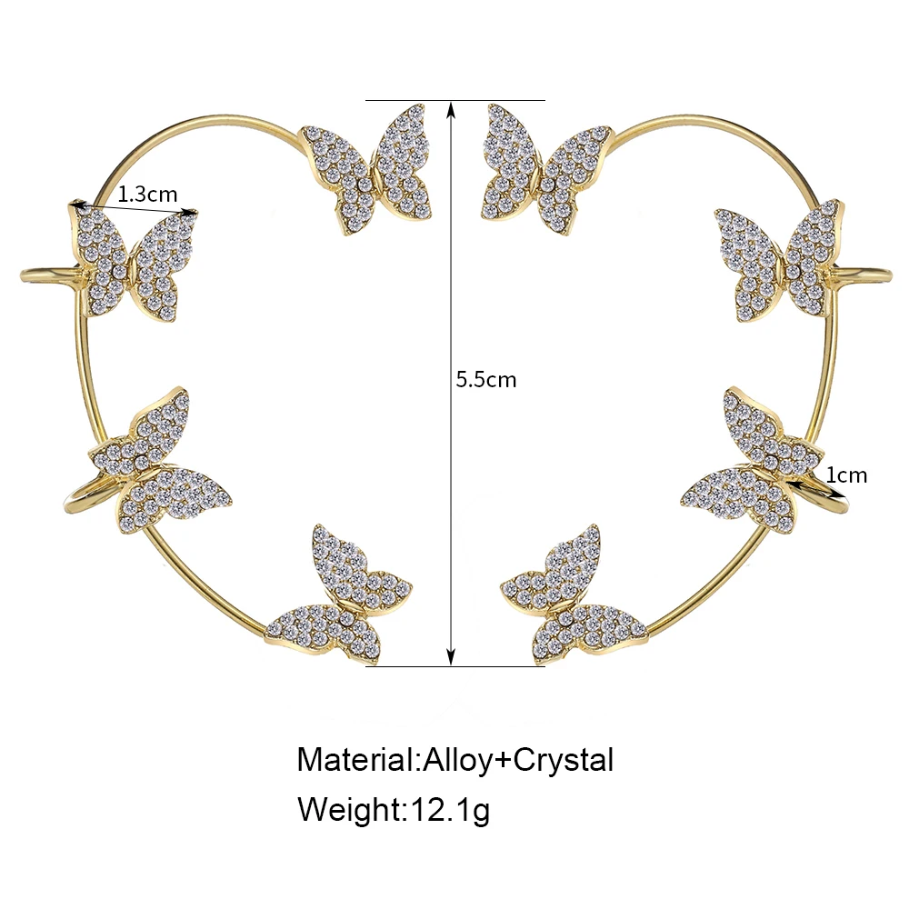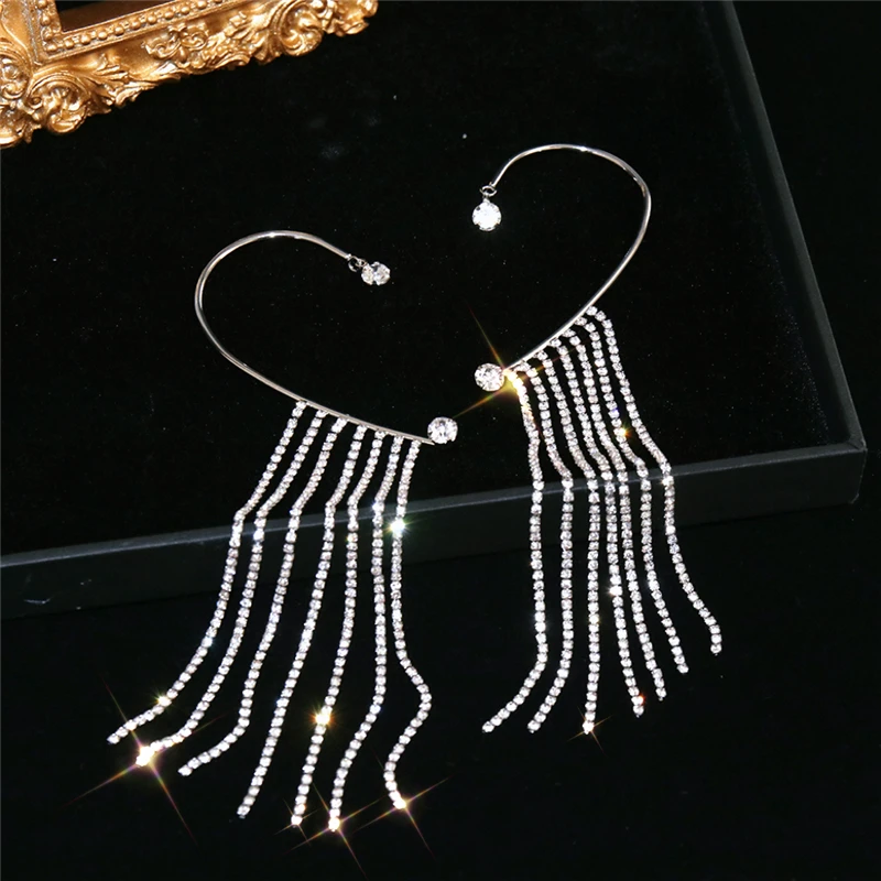 Luxury Shining Zircon Rhinestone Long Tassel Ear Cuff Earrings Exquisite Butterfly Leaf Clip Earrings Wedding Party JewelryLuxury