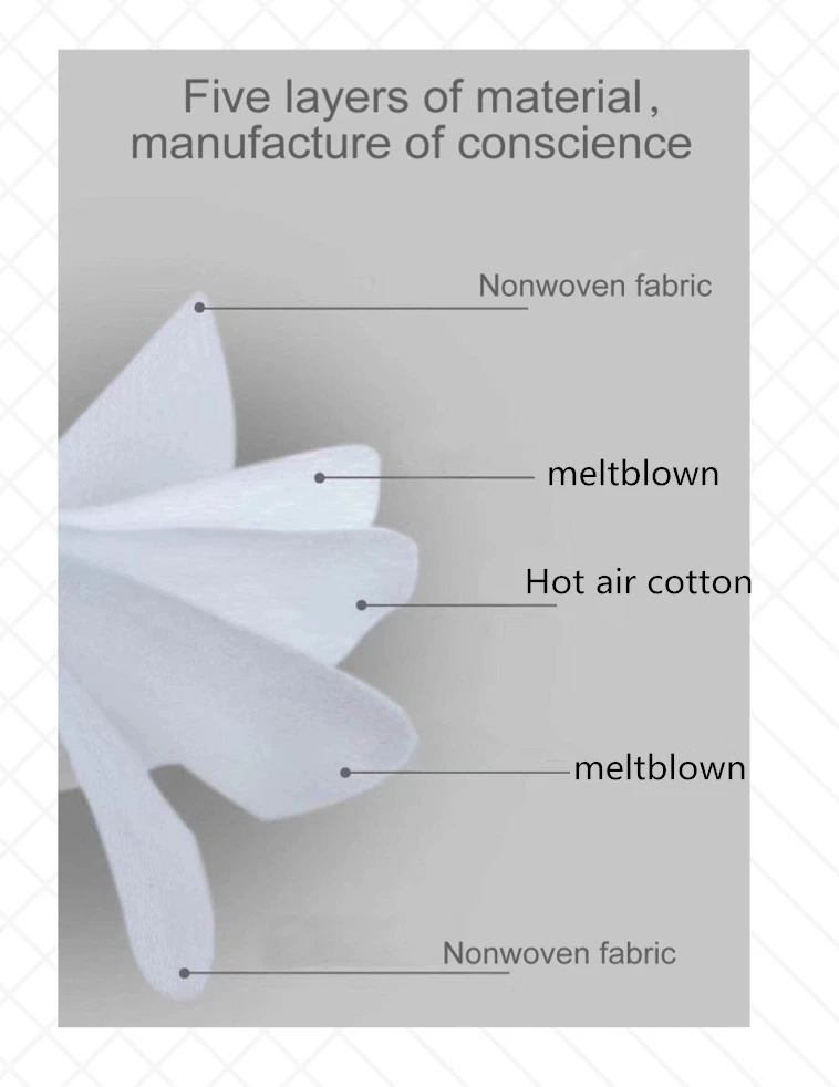 Material | Non-woven+meltblown+Hot air cotton+meltblown+non-woven |