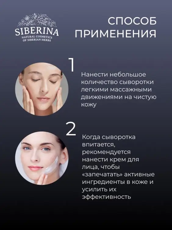 METHOD OF USE: | Before the first use, shake the bottle and slowly press the dispenser 15-20 times. Apply the serum to the previously cleansed skin of the face. After the serum, it is recommended to apply a cream to "seal" the active ingredients in the skin and enhance the effect. | |