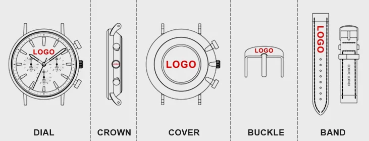 The material of the case is alloy. The material of strap includes stainless steel, genuine leather, PU and nylon.