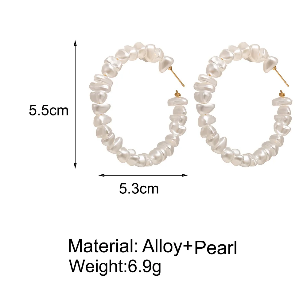New Boho White Pearl Round Circle Hoop Earrings Women Gold Color Big Earings Jewelry Statement Earrings |