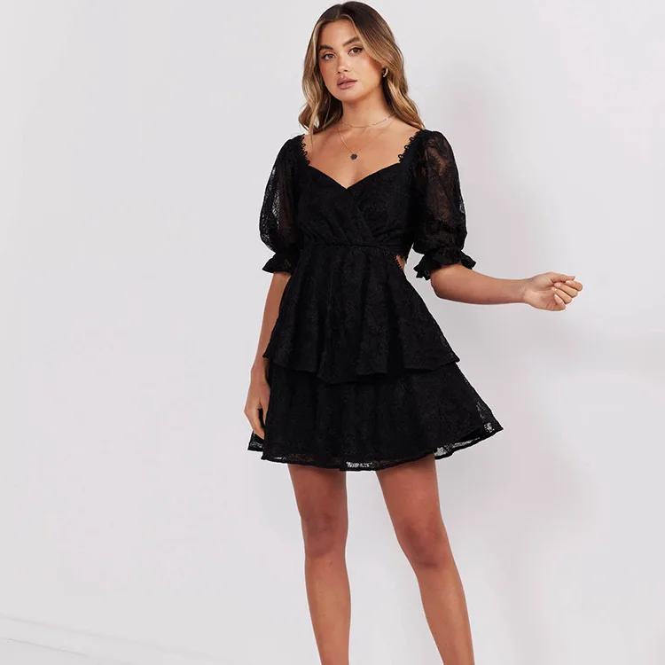 New Ladies Fashion Hollow Out Backless Lace Up Embroi Dery Abiti Mini Women Casual Plain Dress