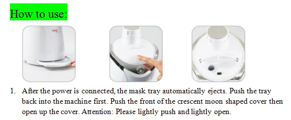 8.Anything that can be squeezed can make mask through machine . Any liquid or juice can also be used , like red wine , milk, honey and so on. Any powder can also be used as a facial mask through machine, like pearl powder.