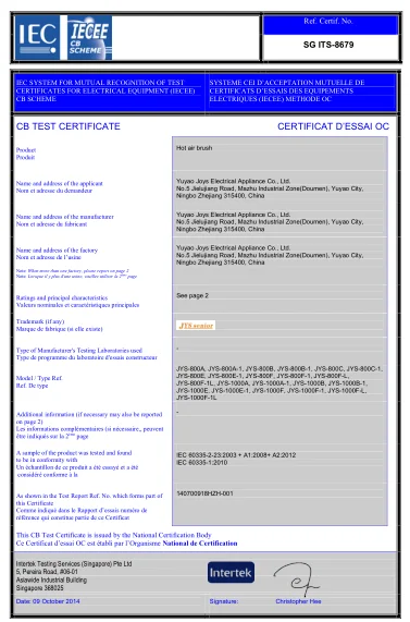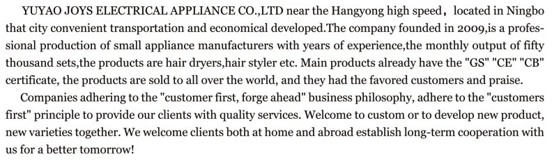 YUYAO JOYS ELECTRICAL APPLIANCE CO.,LTD.