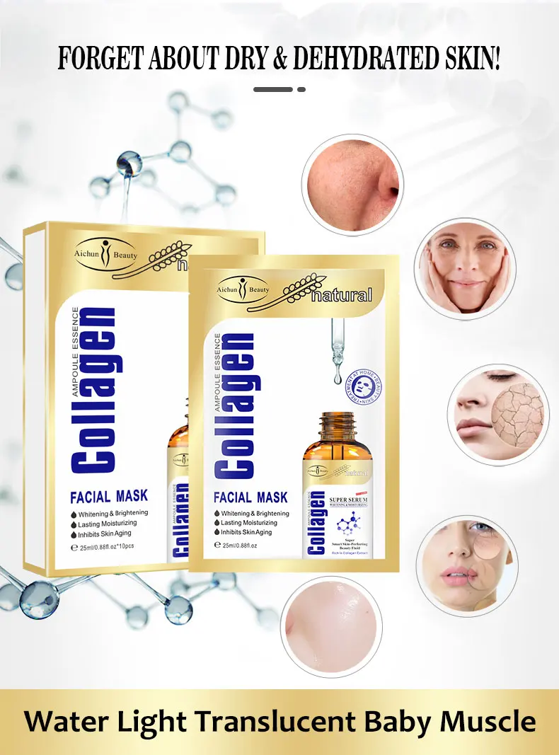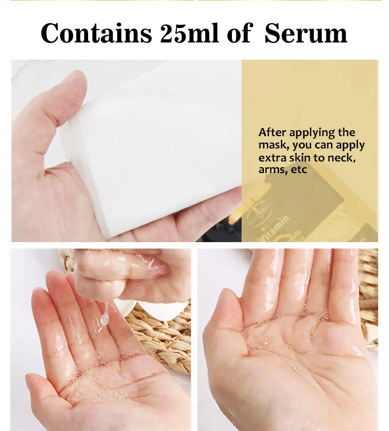 features | Promotes collagen's generation,whitens,remove acne, minimizes pores, smooths out fine lines. Sweep away the dullness, skin regains healthy radiance, firming and brightening. Plant fiber material. Moisturizing. Nourishing. Sensitive to repair. Delicate skin. Calm the skin. Long lasting. | ||||||