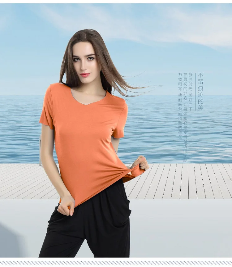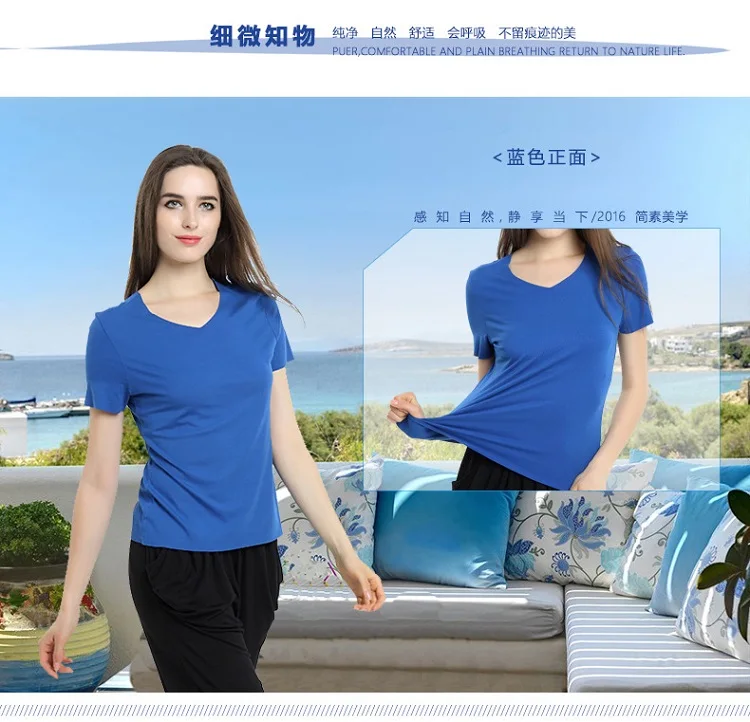Popular Woman Tshirt V-neck Ladies Tshirt Comfortable Bamboo Women T-shirt