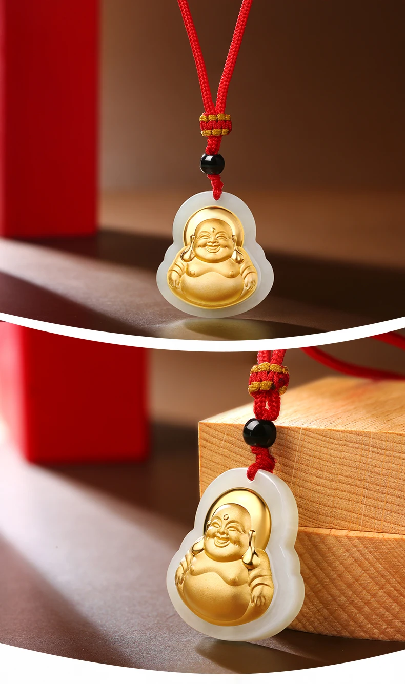 Real Pure 24K Gold Jade Necklace Pendant Natural High Quality Chinese Jade Pendant Safety And Wealth For Women