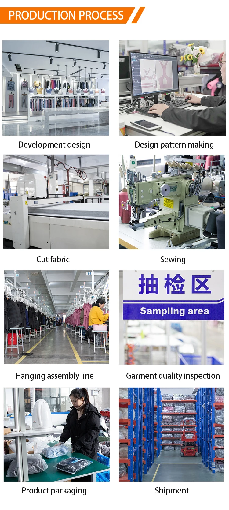 A7: We can manufacture the specified goods,you can provide the clothes design draft or send the sample for us to check for reference and give us some details information.We can do the design what you want.And the price will be lower than take our stock if you reach our quantity.