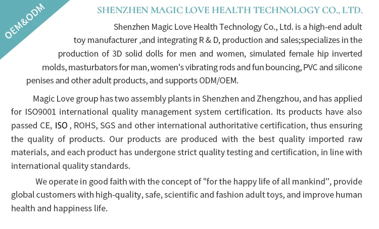 Magic Love group has two assembly plants in Shenzhen and Zhengzhou, and has applied for ISO9001 international quality management system certification. Its products have also passed CE,ROHS, and other international authoritative certification.