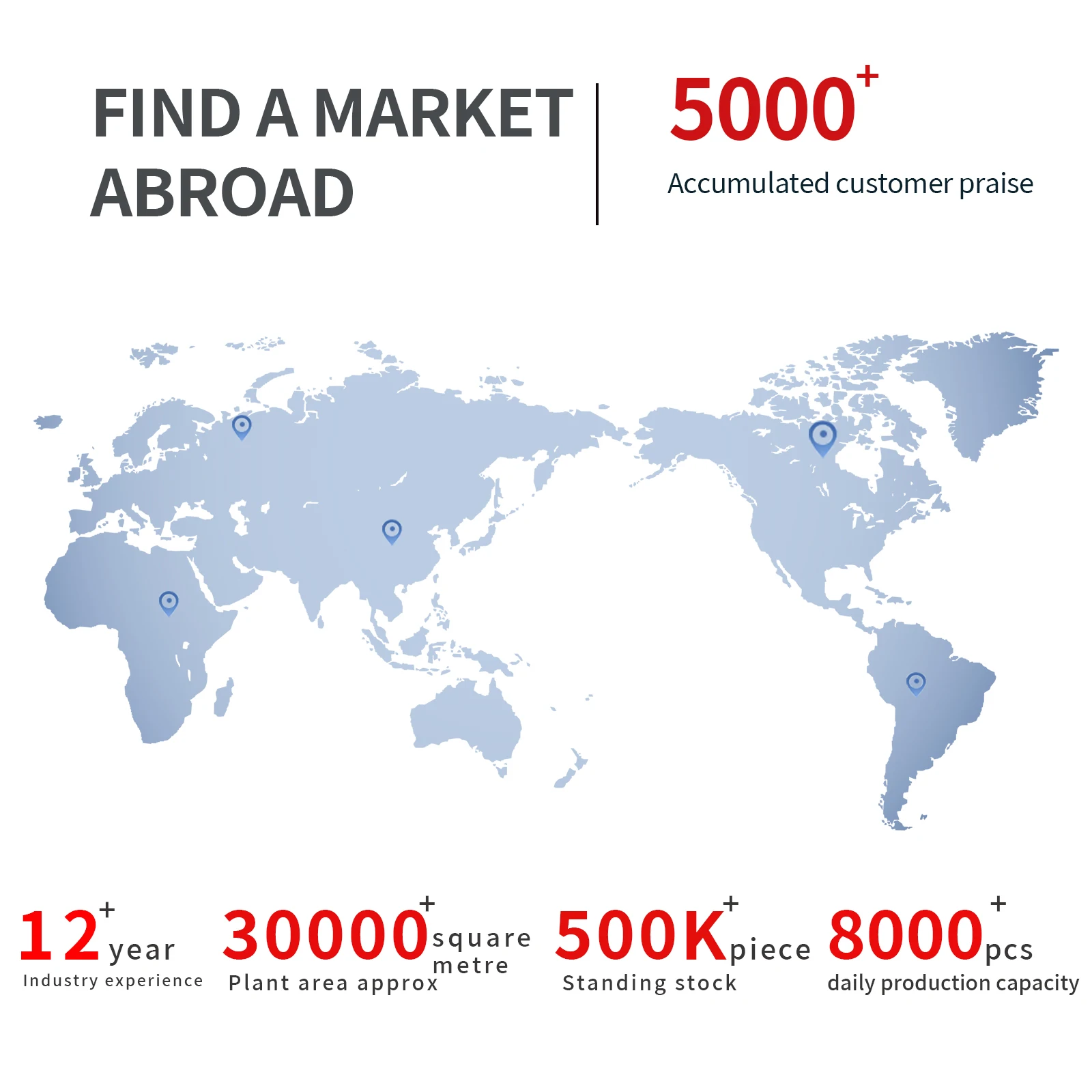 We are based in Guangdong, China, start from 2022,sell to Eastern Asia(20.00%),Mid East(20.00%),Domestic Market(10.00%),South America(10.00%),North America(10.00%),South Asia(10.00%),Southeast Asia(10.00%),Western Europe(5.00%),Africa(5.00%). There are total about 11-50 people in our office.