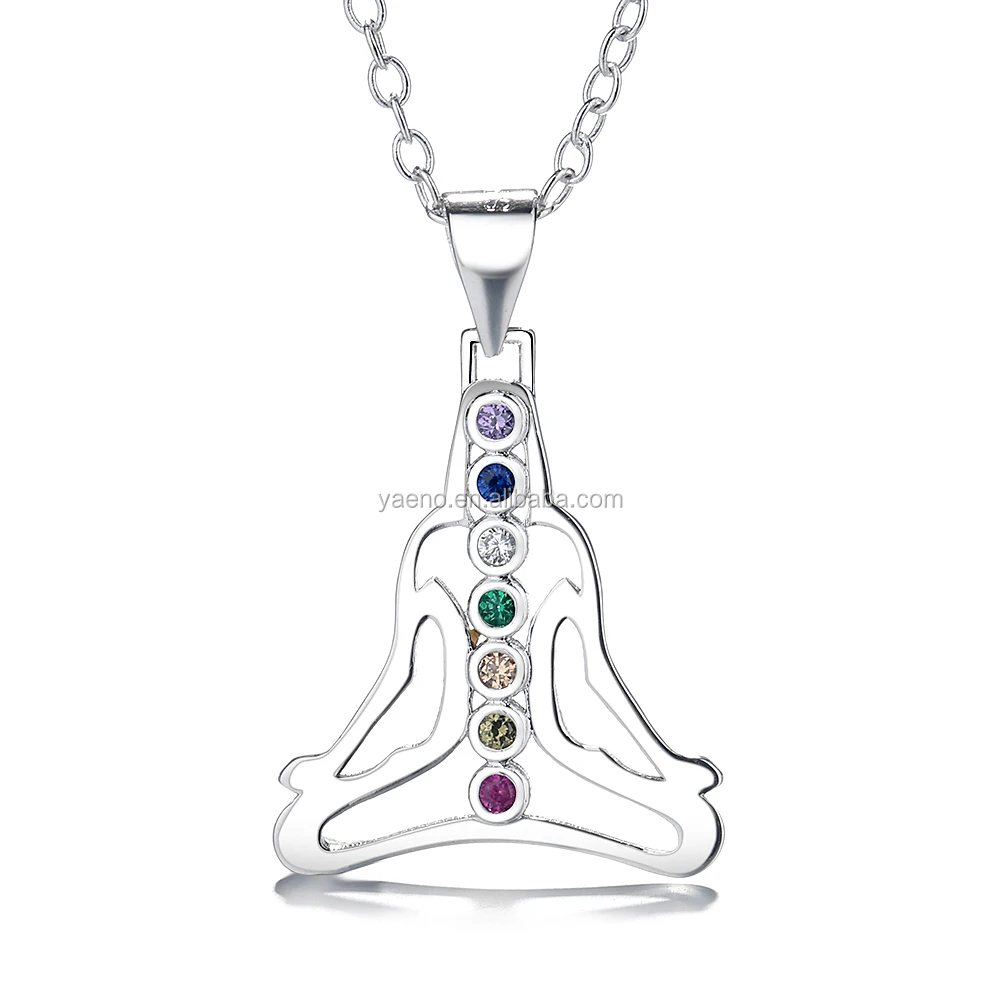 Solid 925 Sterling Silver And Chakra Stones Yoga Pendant Necklace With Multi Colour
