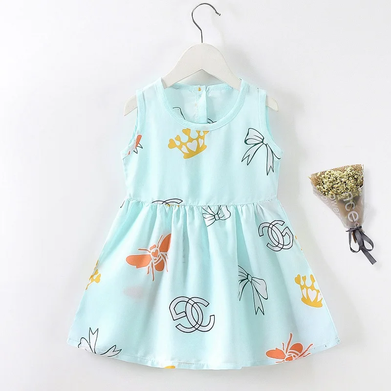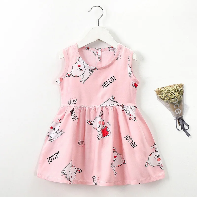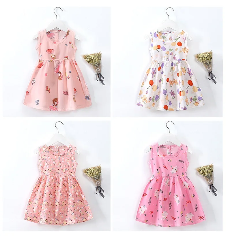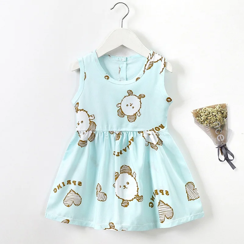 Summer Newborn Baby Clothes Infant Girl Clothes Korean Cute Print Sleeveless Kids Cotton Beach Dress Princess Baby Girl Dresses