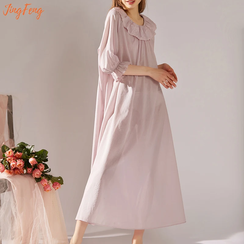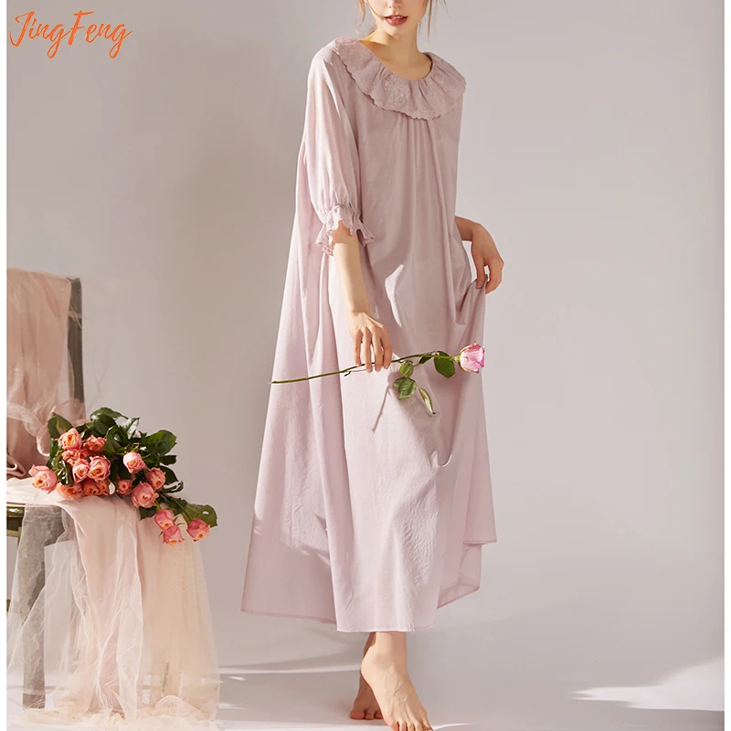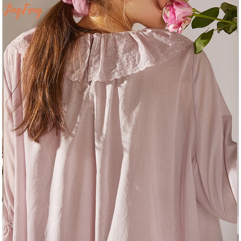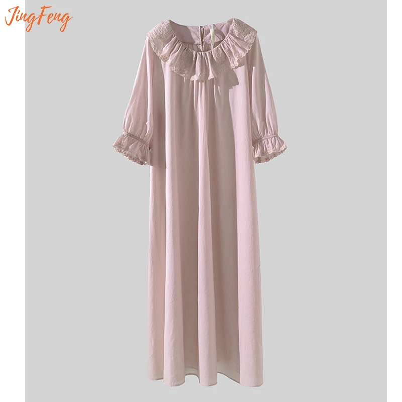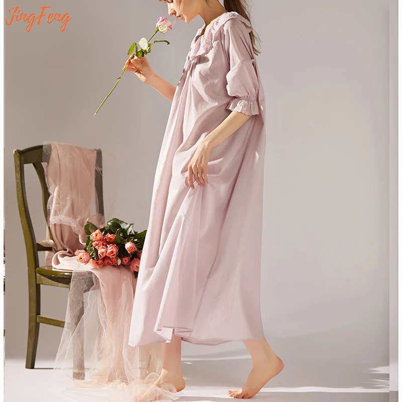 Vintage Style Nightdress For Women's Cotton Nightgown Retro French Lace Sweet Pajamas Long Sleep Dress |