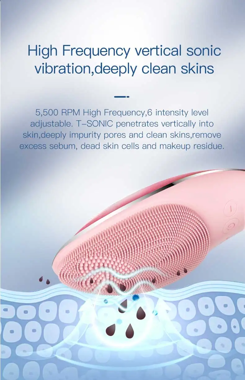 Waterproof Electric Silicone Facial Cleaning Brush Sonic Vibration Massage USB Charger Smart Face Cleaner