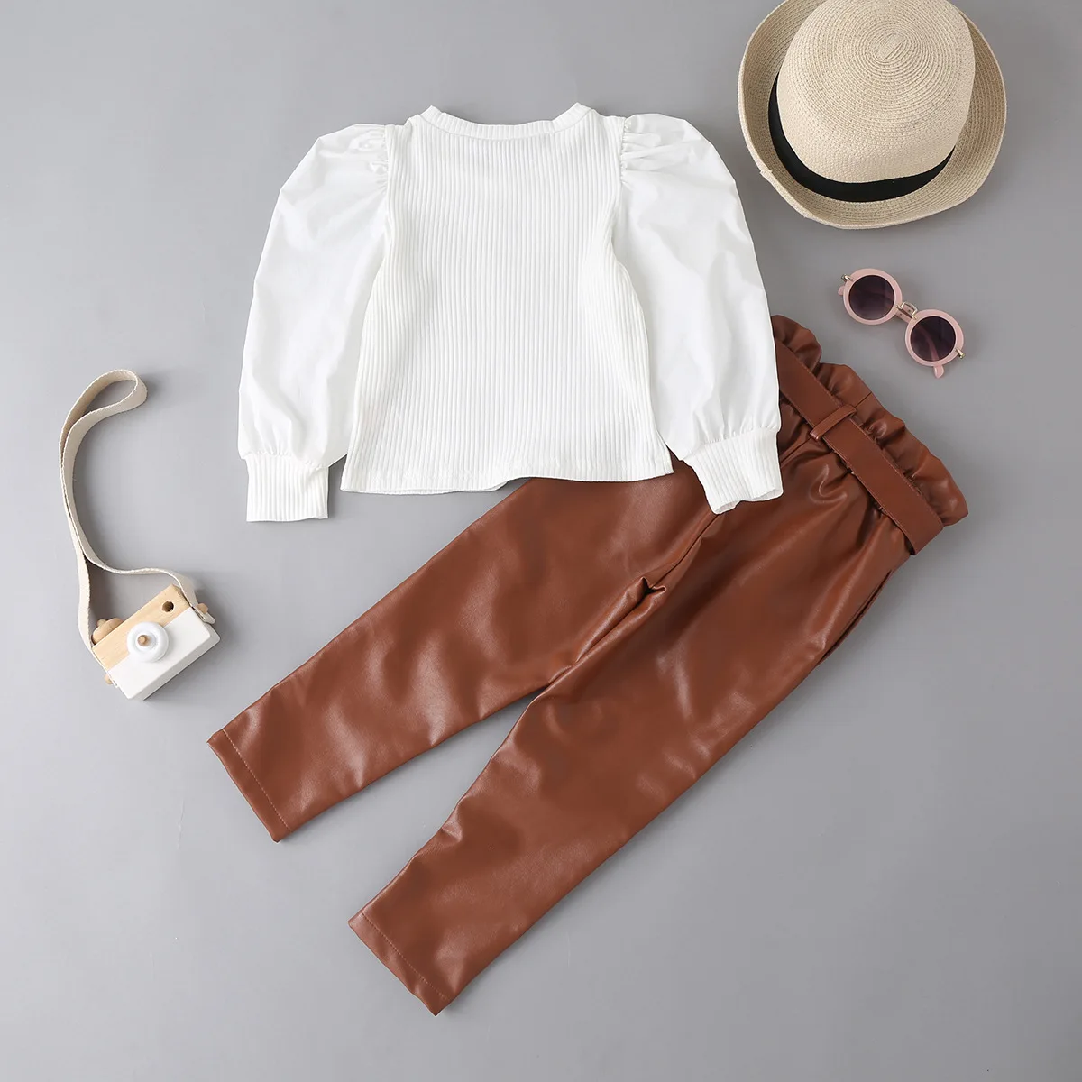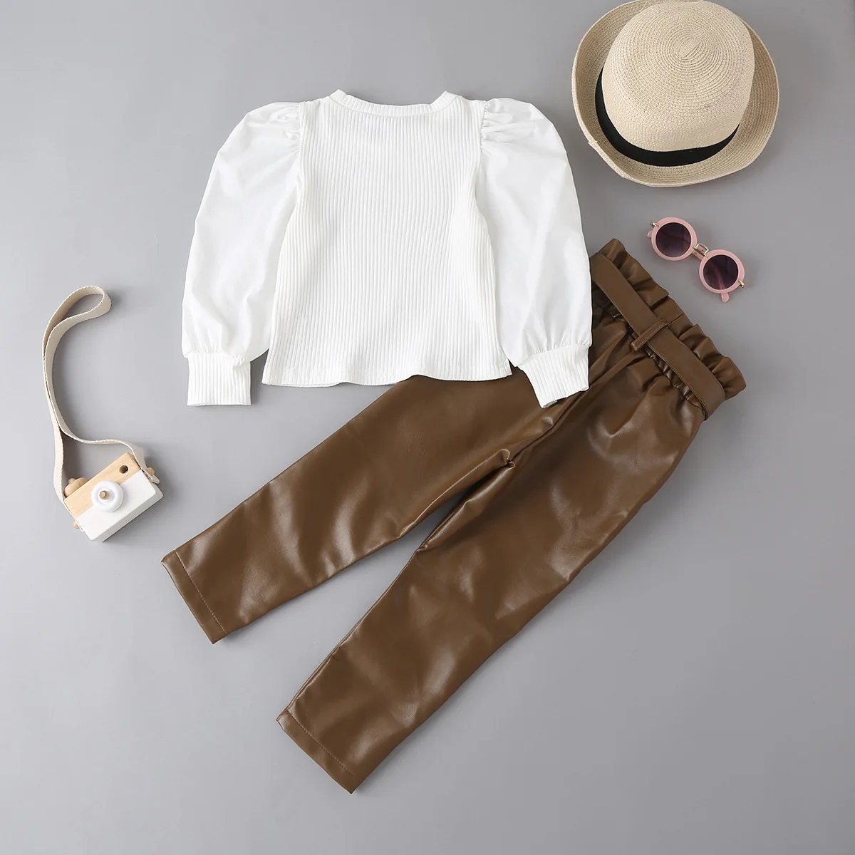 Wholesale Children Beautiful Girls Clothing Sets 2022 Kids 2 Piece Sets Little Girls Leather Pants Two Piece Set
